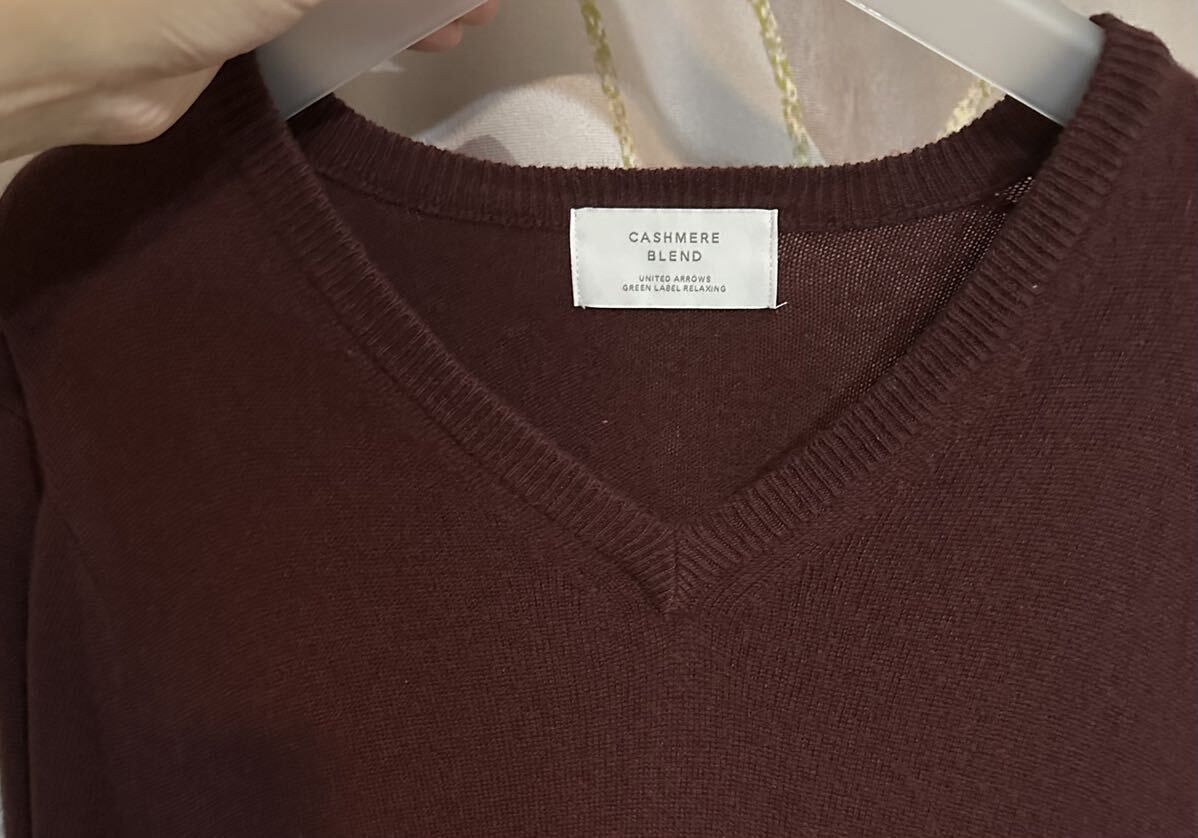 ・ウールとカシミヤを30%ブレンドした着心地が良くてお洒落なVネックニットとなります。