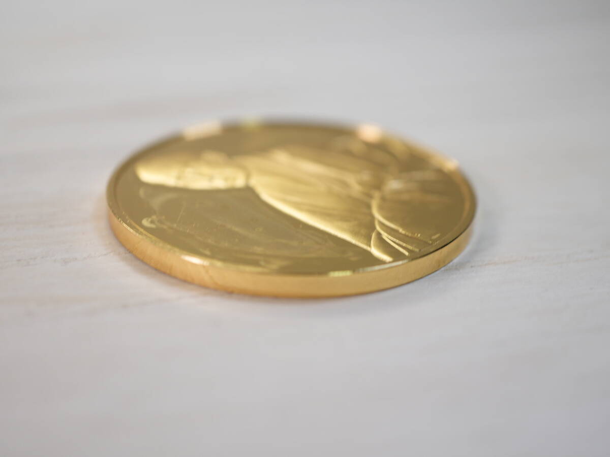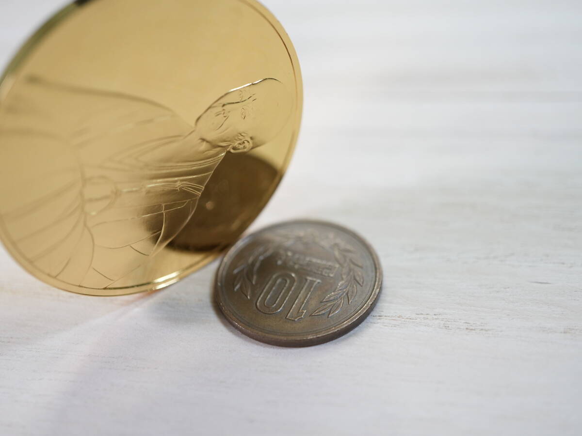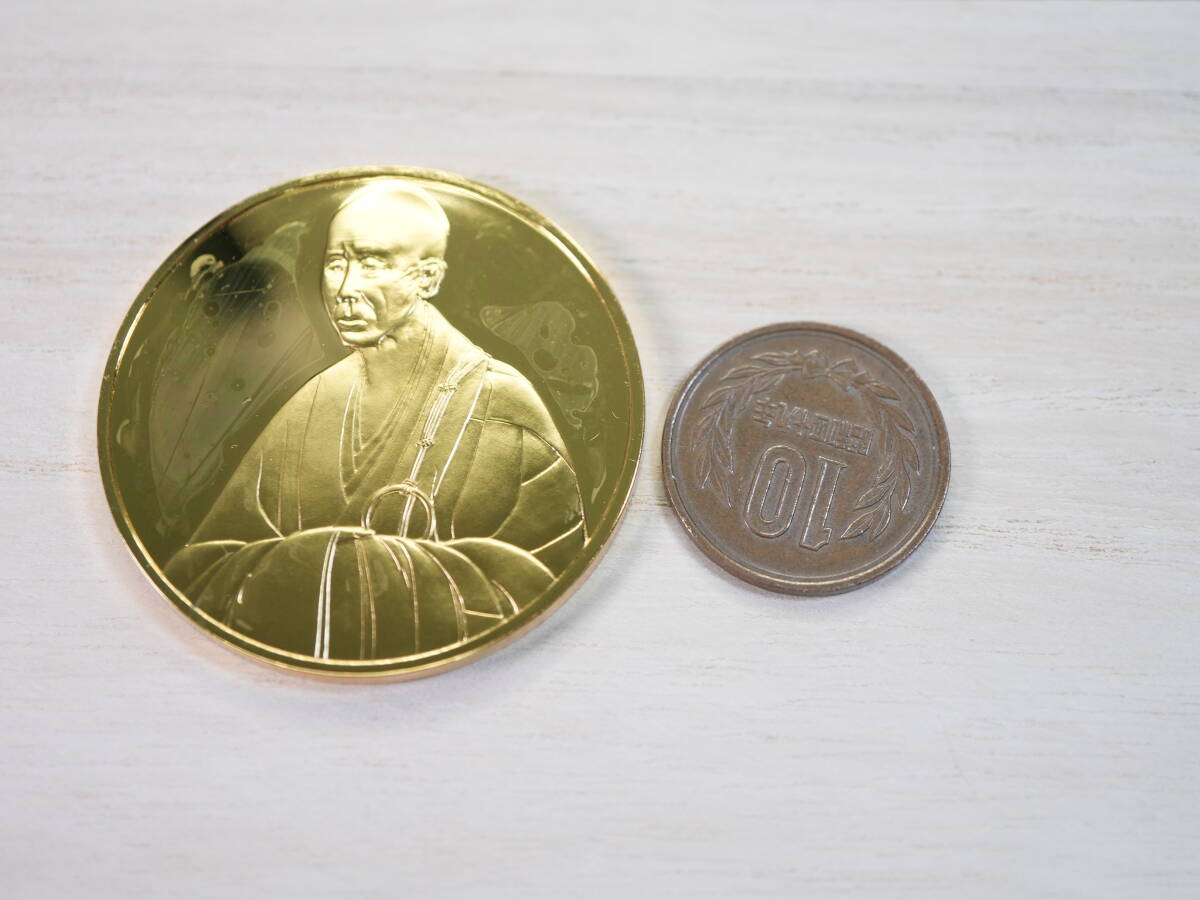 昭和60年に数量限定で発売されたメダルでして、鎌倉時代の14世紀あたりに制作されたと言われております南北朝時代の英雄・夢窓疎石でございます。 4.5センチ × 4.5センチ 重さ約33グラム、鏡面仕上げ、純金の美しいメッキのメダルにございます。 40年以上前のものでございますゆえ、表面に変色や若干のスレが認められる箇所がある場合がございますが、深い傷やメッキの剥げなどは見受けられない次第にございます。 純金仕上げのメダルの出品で有りがちな画像の加工などは一切行っておりませんので、真実の状態を掲載しております。 可能な限り同梱致しますゆえ、ご希望の方はその旨を落札後にメッセージにてお伝えいただきたく存じます。 |