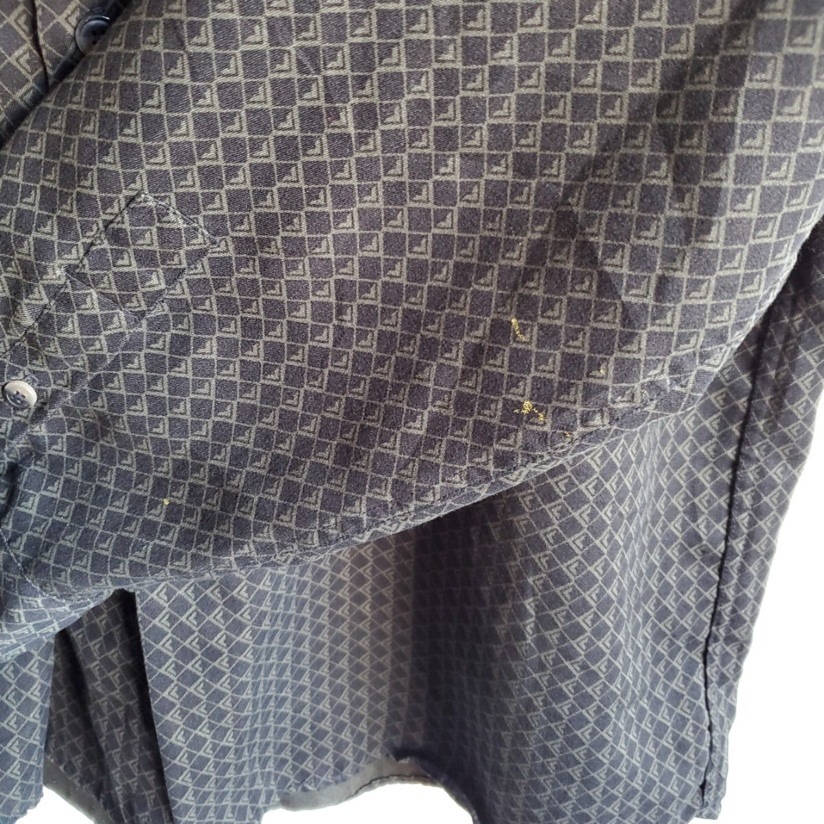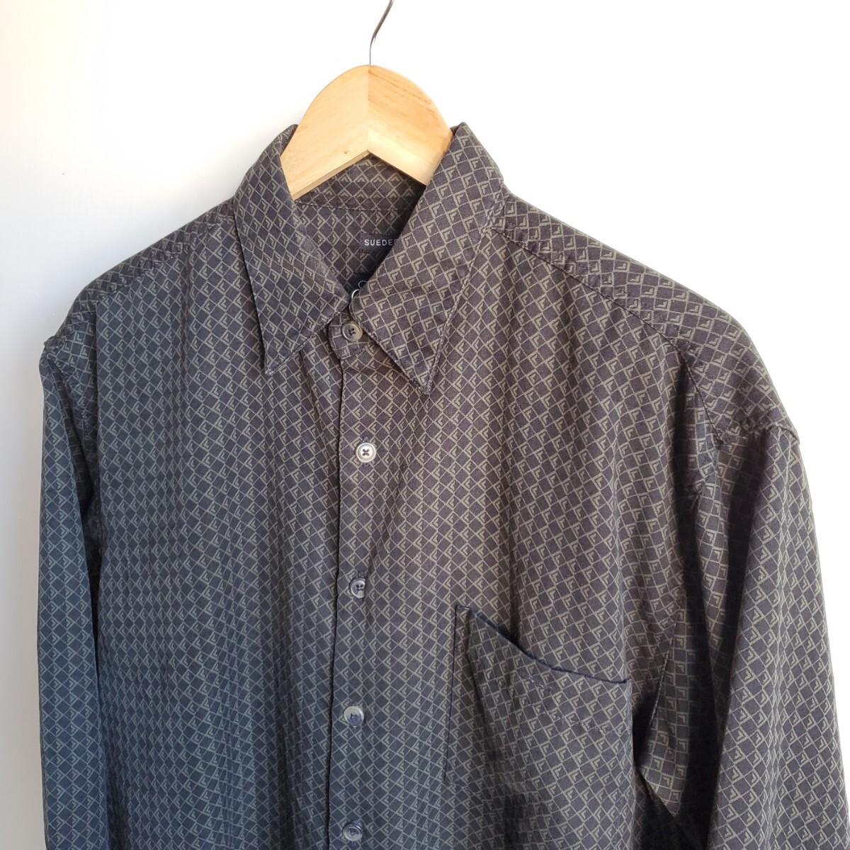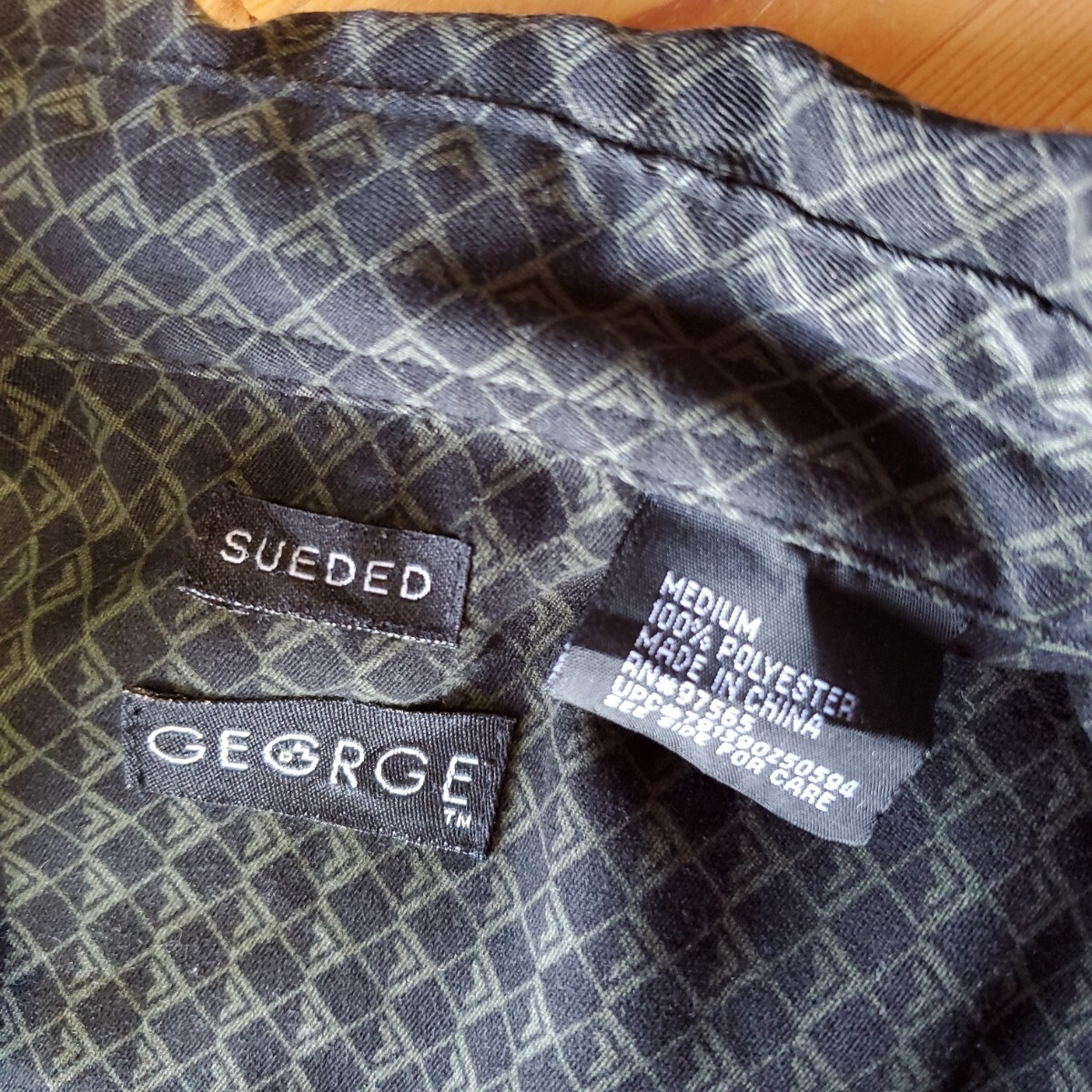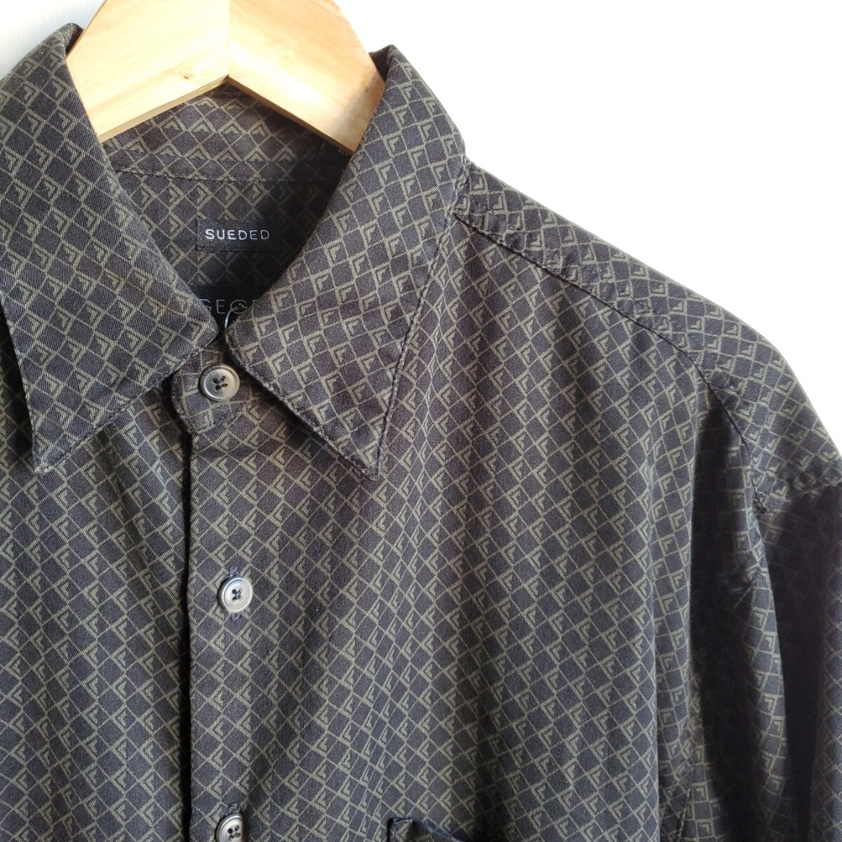 B64◆【sizeM】GEORGE FAKE SUEDED 長袖 フェイクスエードシャツ 総柄 グリーン系 緑×黒 中古 USED 古着