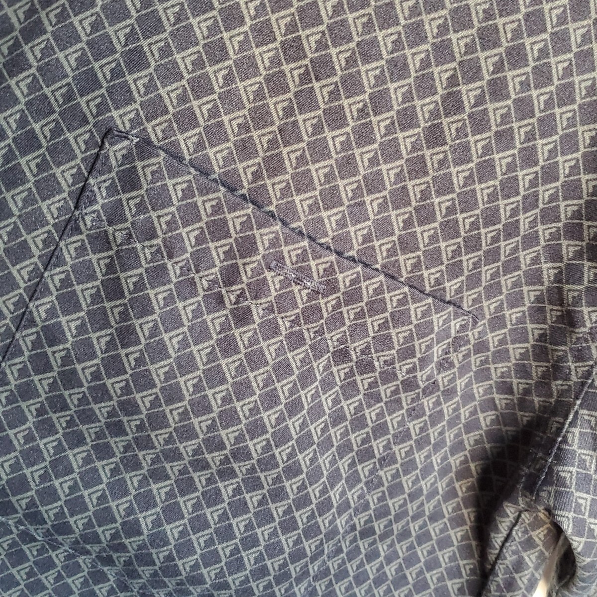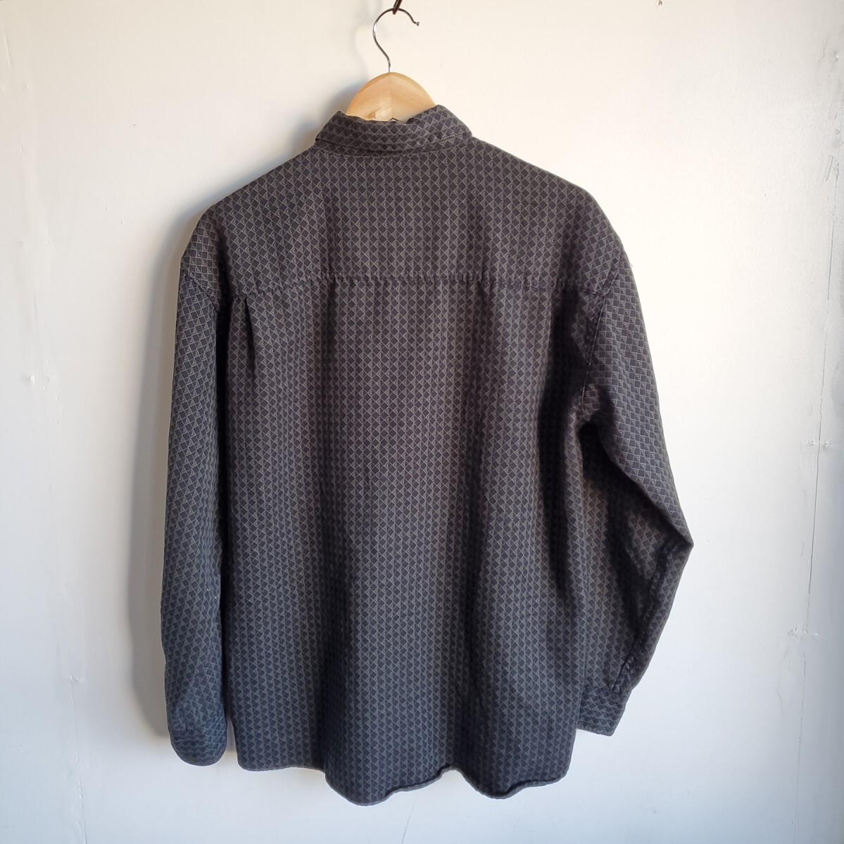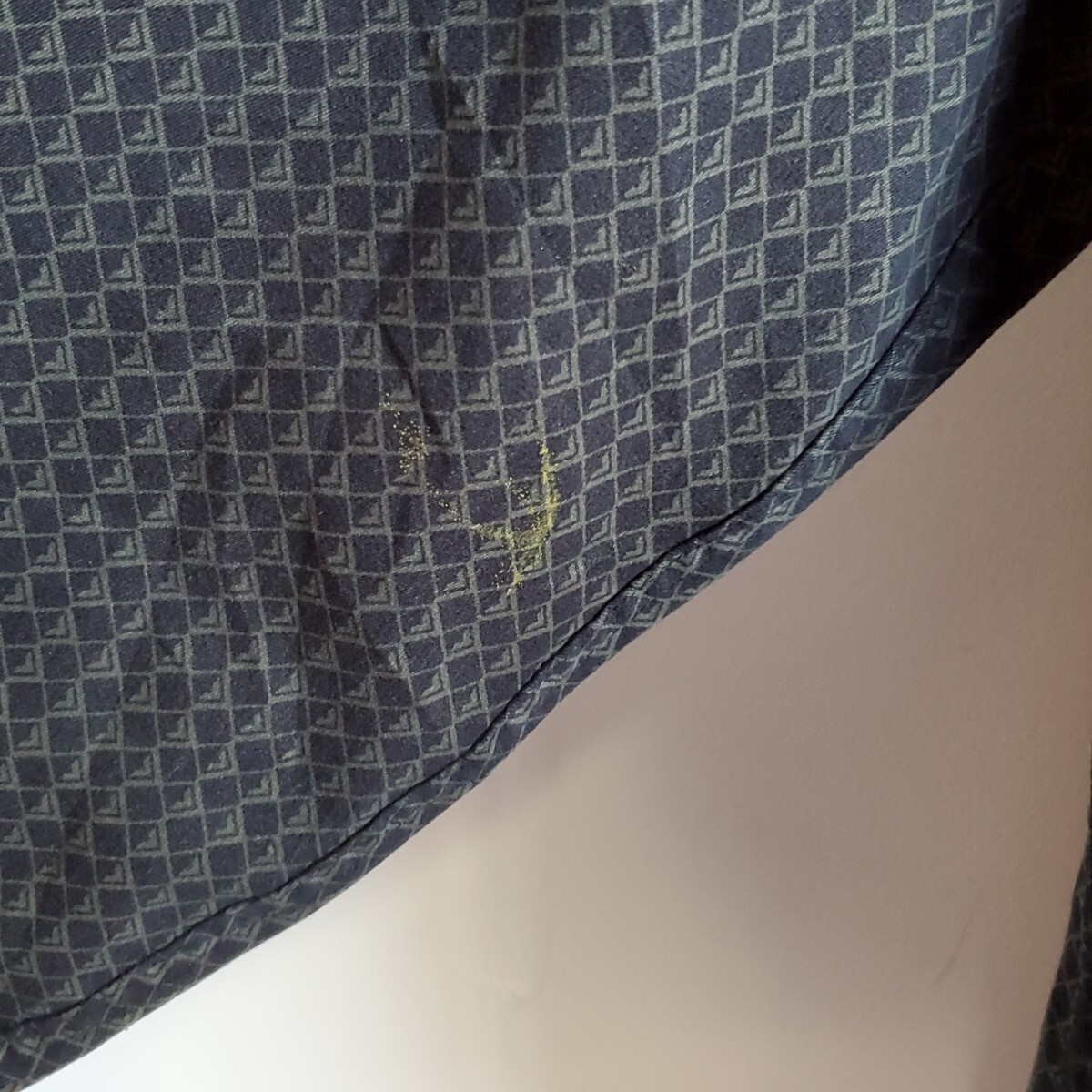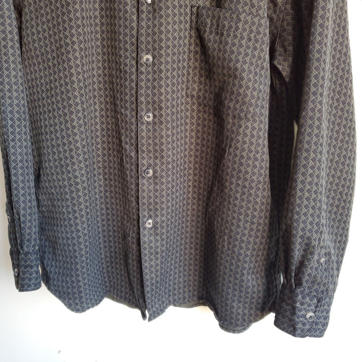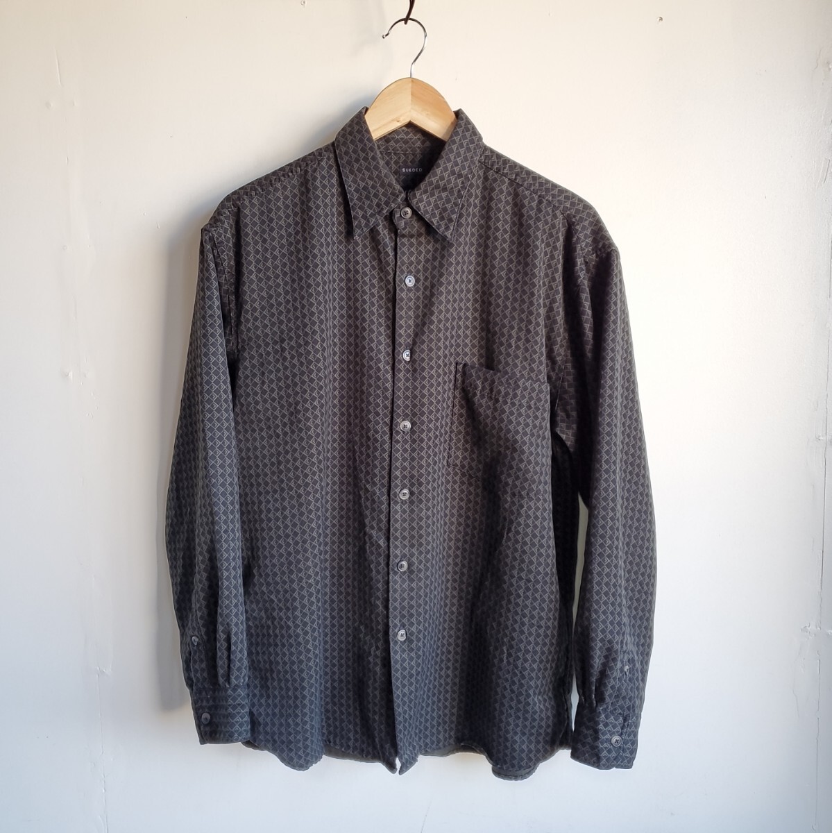 B64◆【sizeM】GEORGE FAKE SUEDED 長袖 フェイクスエードシャツ 総柄 グリーン系 緑×黒 中古 USED 古着