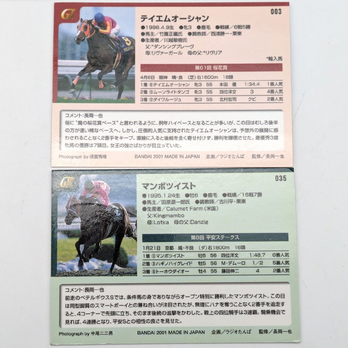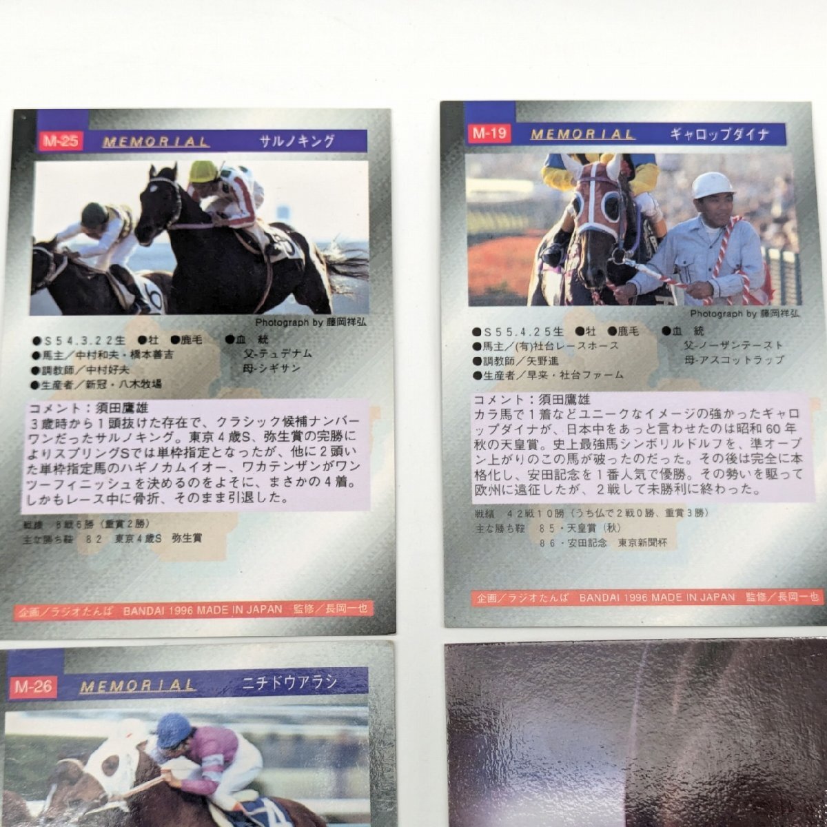 サイズ:約63×88㎜、6枚セット、状態ランク:C サルノキング・ニチドウアラシ・テイエムオーシャン・マンボツイスト・ジョウテンブレーヴ・ギャロップダイナ、商品は画像に写っているものが全てです。どのカードにも若干の小キズが見受けられます。その他状態は画像をご確認ください。※一枚ずつをビニールに包み発送いたします。スリーブへの挿入などは行いませんのでご了承ください。