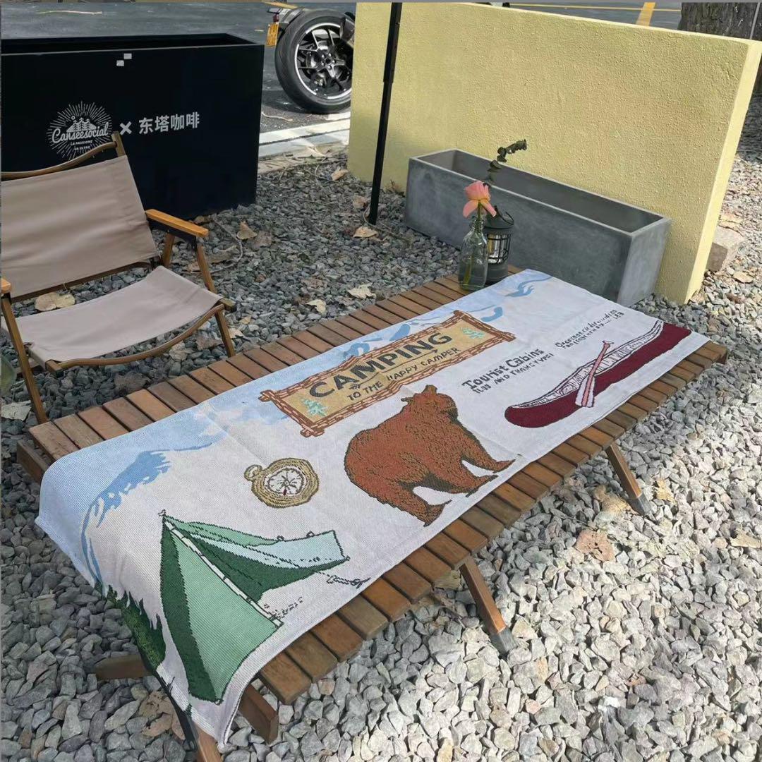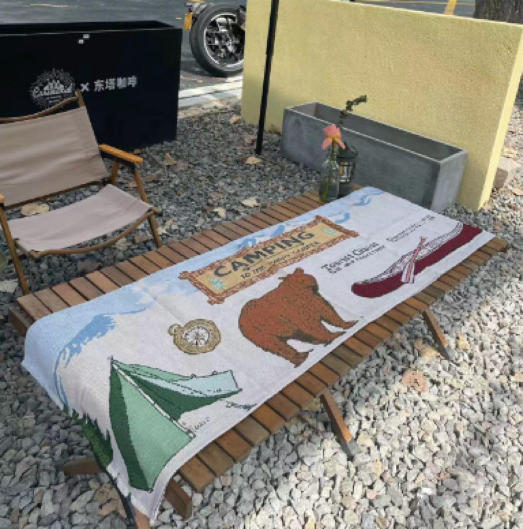 お部屋の模様替えにいかがですか? こちらのラグ一枚で、お部屋がアウトドアテイストに早変わり!キャンプ柄が可愛くて、お部屋のアクセントになります。