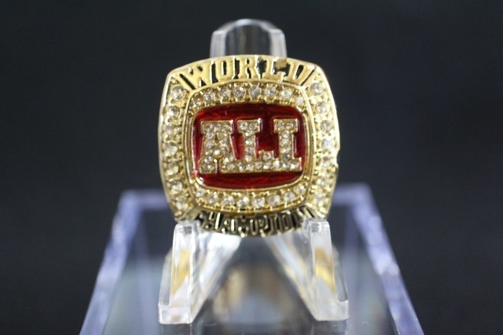 ボクシング ヘビー級 モハメド アリ ワールドチャンピオン リング+スタンド+ケース 24号サイズ 70g 装飾 鑑賞 大きくて重い 指輪 メンズ