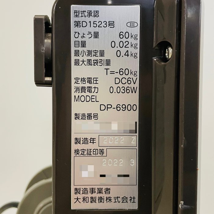 <仕様> 商 品 名 :非防水型デジタル台はかり メーカー:大和製衡 型 式:DP-6900 年 式:2022年 寸 法:約 幅 354mm × 奥行 634mm × 高さ 784~804mm 重 量:約 13kg 電 源:単1 形乾電池×4本 ひょう量:60kg 目 量:0.02kg 最小測定値:0.4kg 付 属 品 :写真に掲載されているものが全てとなります。 <動作確認> ・2kgの分銅を乗せ、0kgから2kgになることを確認しました。 <状態> ・目立つ傷や汚れはありません。 ・商品の状態は写真にてご確認ください。 ・専門店ではないため、商品の詳細等のご質問にはお答え出来ない場合があることをご了承ください。 |