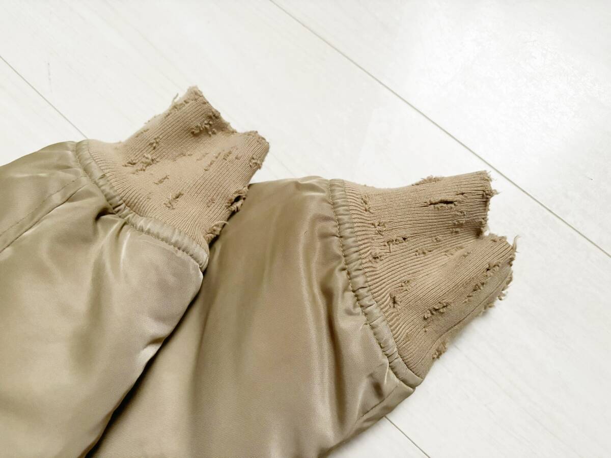 レア IRO.JEANS Alois Hooded Bomber JACKET MA-1 ジャケット ボンバー オーバサイズ ダメージ加工 ミリタリー ナイロン 34 ベージュ△1029