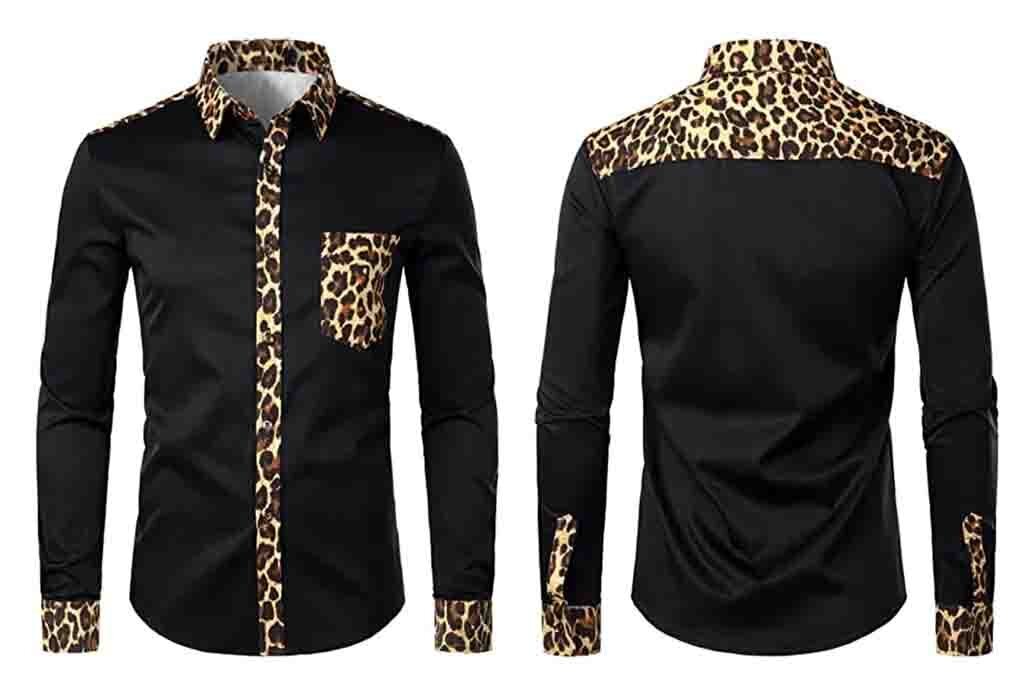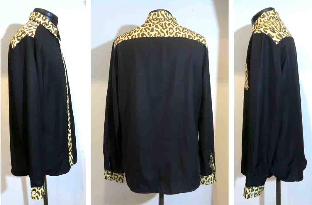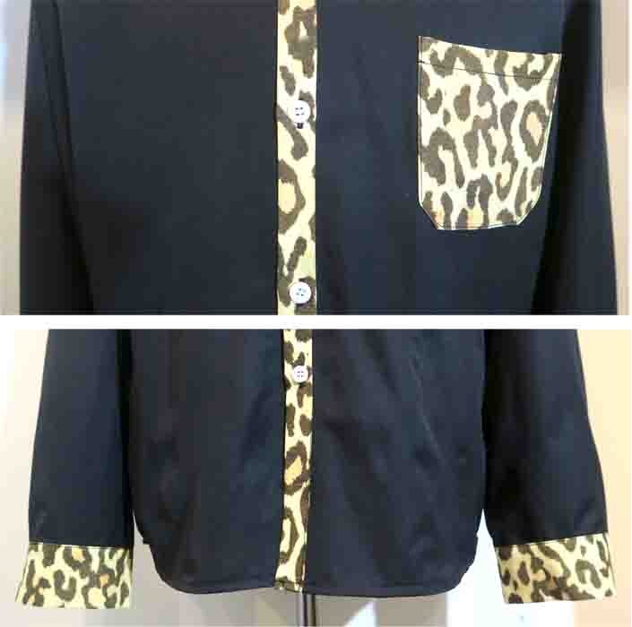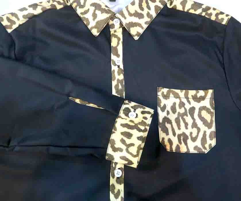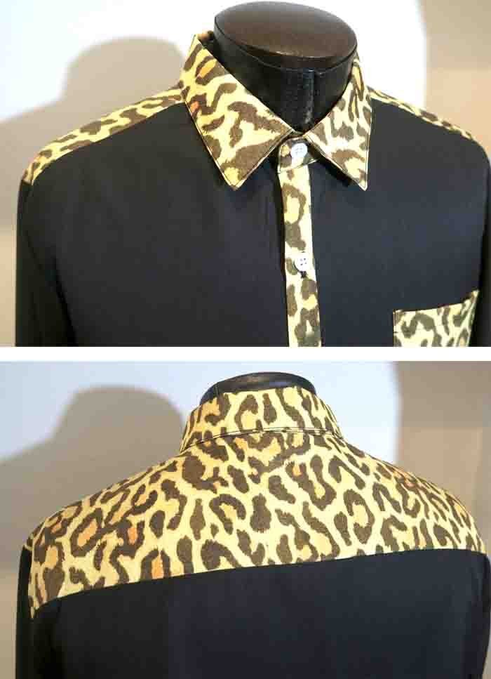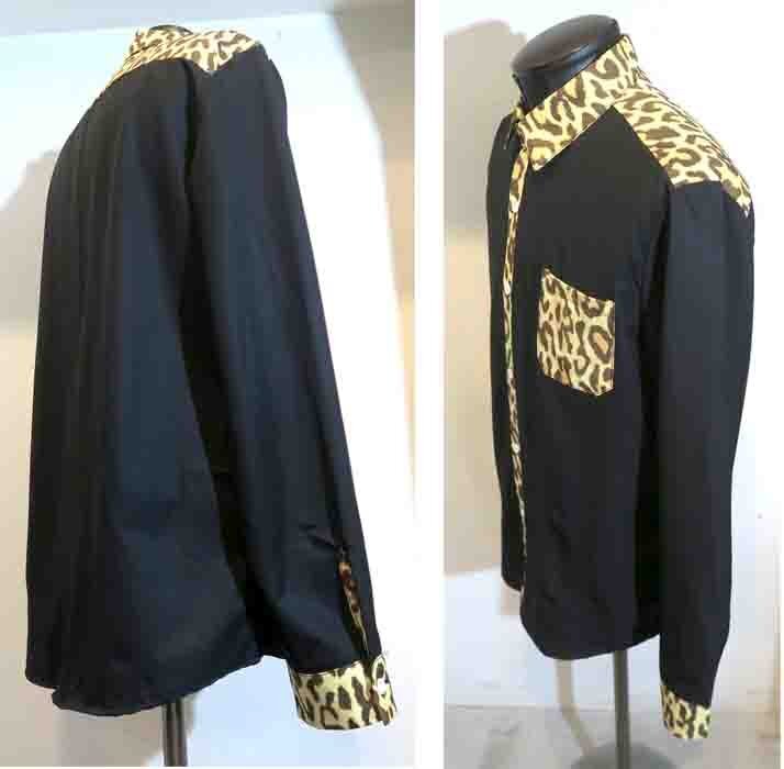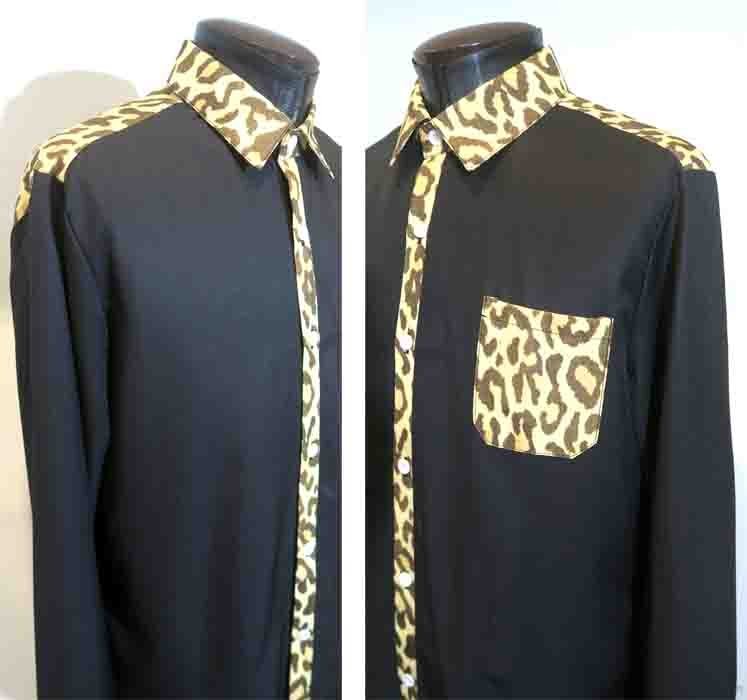 新品 Lサイズ 豹柄シャツ 切替 黒 1948 メンズ ドレスシャツ ブラック パンサー レオパード 柄シャツ パーティー衣装 ロカビリー ロック