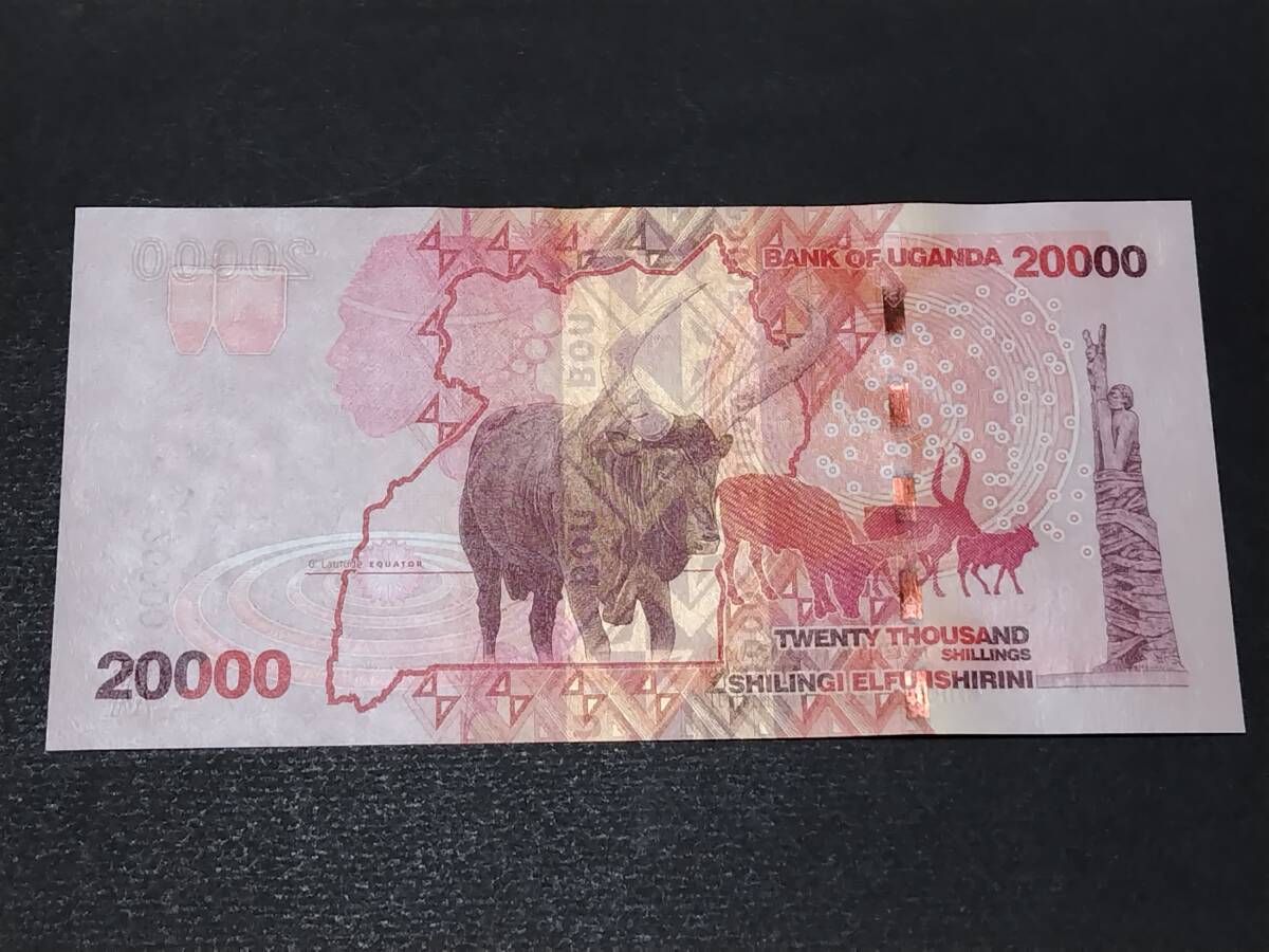 ウガンダ 2万(20000) Shillings札  コレクション向きのピン札  未使用~甘い未使用  2010年  初期発行版  牛 センテナリー・パーク p-52a #AD5127178