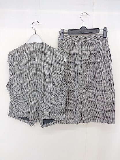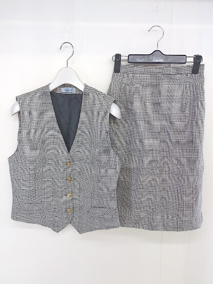 ◇ YUKIKO HANAI 膝丈 スカート ベスト セットアップ 上下 サイズ7 ホワイト ブラック レディース