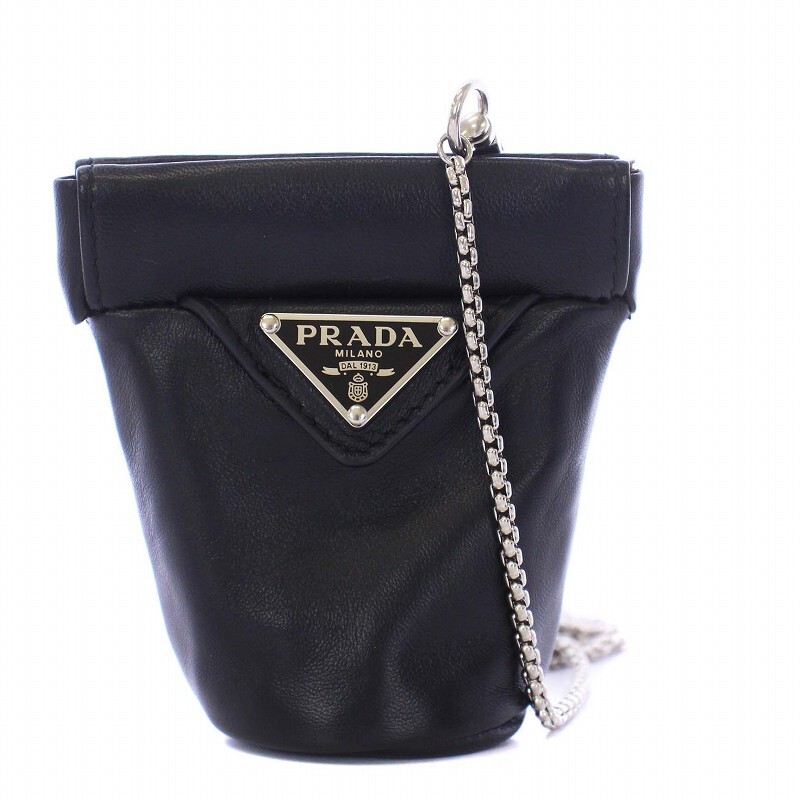 プラダ PRADA ナッパレザー ミニ ネックレスポーチ 三角プレート 黒 ブラック 1NR002 /KH ■OH レディース