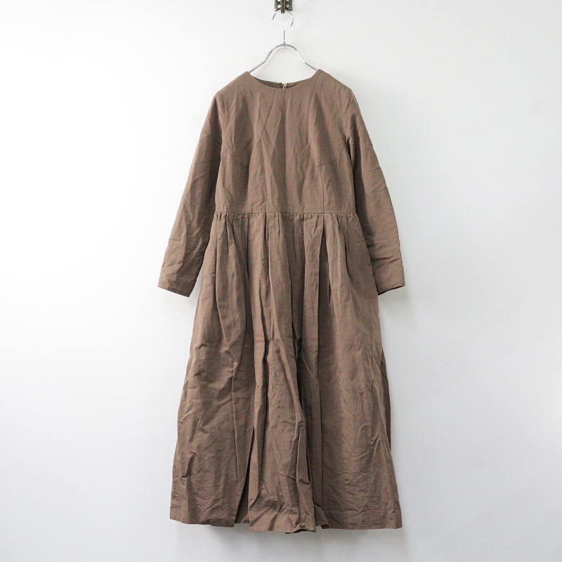 定価49500円 ヤエカ ライト YAECA WRITE 92756 WRITE LONG SLEEVE TUCK DRESS ライトロングスリーブタックドレス S 茶【2400014102062】