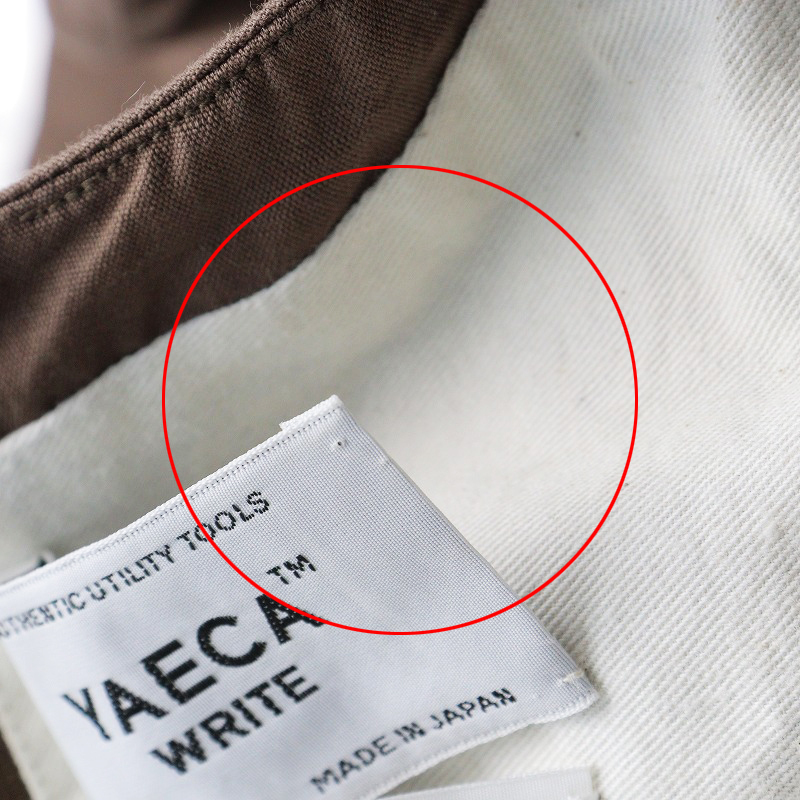 ブランドタグの右上のステッチにホツレが見受けられます。