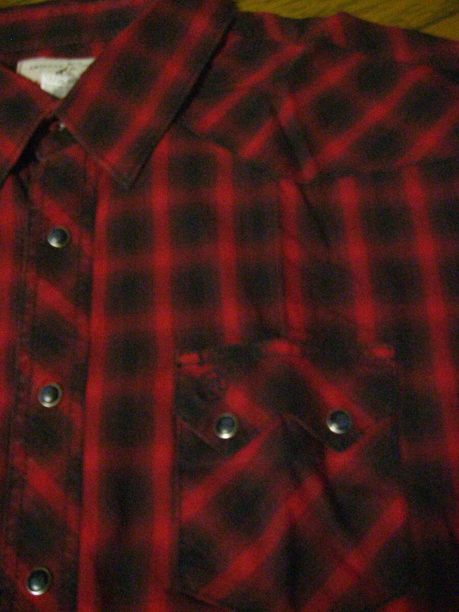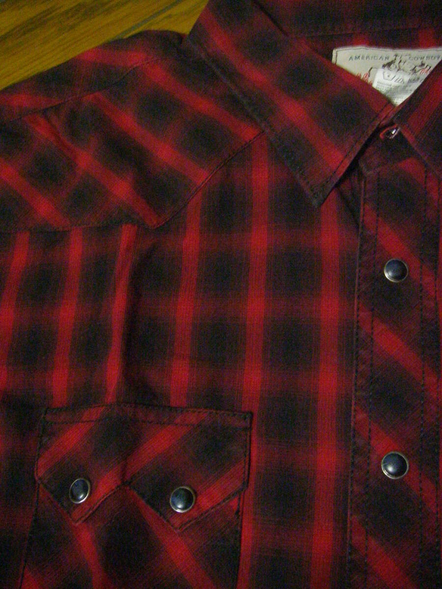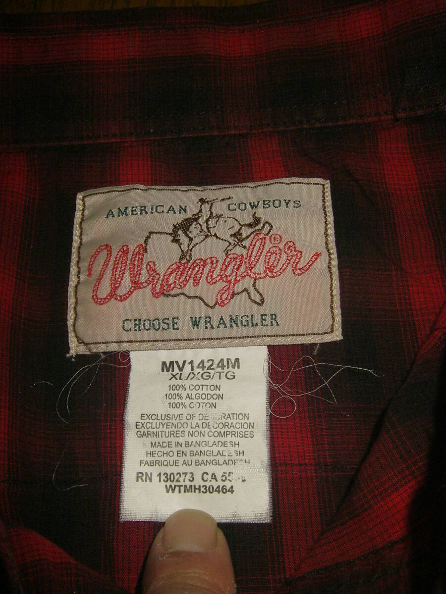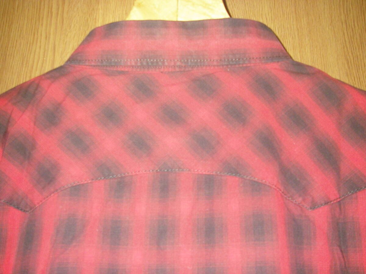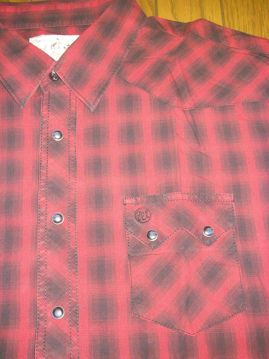 ラングラーの赤黒系チェック柄のウエスタンシャツです。コットンのいい生地です。若干の使用感ございますが、特に大きなダメージも無く(チェックしまして生地、スナップボタン等に不備はございませんでしたが、USED品ですので見落とし、ボタンとれがあるかもしれません。USED品ですので、責任は持てません。リペア、ボタン交換等は落札者様でしてください。)、まだまだ着用して頂けるかと思います。あくまでUSED品になりますので、神経質な方、古着のご理解のない方、入札しないで下さい。メーカーサイズ表記XLサイズで、平置き採寸で、肩幅52センチ、袖丈64センチ、着丈73,5センチ、脇下身幅64センチです。素人採寸ですので多少の誤差はお許しください。