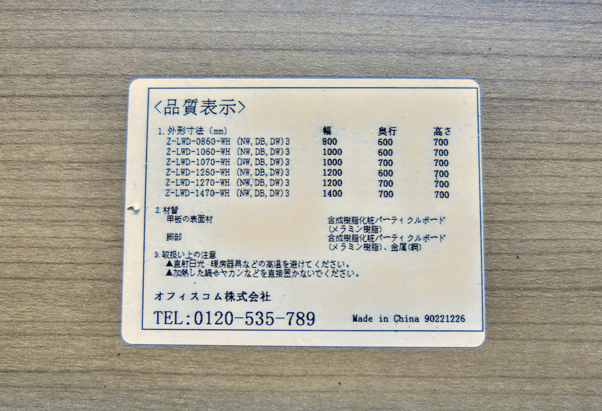 | 商品説明 | ◆配送・送料については下記に記載がございます。◆ 【状態ランク】B ◆ランクについて◆ S・・・・未開封品、開封品・未使用品 A・・・・付属品の有無あり、状態がきれい B・・・・付属品の有無あり、使用感あり(落としきれない汚れや傷あり) C・・・・付属品の有無あり、傷・汚れあり、型遅れ D・・・・付属品の有無あり、傷・汚れあり、破損あり、型遅れ J・・・・ジャンク品、基本動作しない、大きな破損あり 【商品状態】 中古品の為、各所に擦れ傷や小さい傷、落としきれない汚れがございます。 【商品名】オフィスコム オフィスデスク Z-LWD-1060WH 事務机 パソコンデスク 平机② 【サイズ】W100・H70・D60 【メーカー】オフィスコム 【型番】Z-LWD-1060WH 【状態】洗剤使用洗浄済み エアーブロー済み 【配送について】 家財便+自社便+引取 解体して配送の場合 ヤマト家財便Bランクにて発送を予定しております。 ※家財便の場合は3~4営業日での発送となります。 【北海道(函館エリア)】6380円 【北海道(札幌/千歳エリア)】6790円 【北海道(道北エリア)(道東エリア)】7310円 【青森】6120円 【岩手】5680円 【宮城】4820円 【秋田】5830円 【山形】4820円 【福島】4650円 【茨城・栃木】4510円 【群馬・埼玉・千葉・東京・神奈川】4510円 【新潟】4800円 【富山】4980円 【石川】5020円 【福井】5690円 【山梨】4510円 【長野】4650円 【岐阜】4870円 【静岡】4540円 【愛知】4840円 【三重】4980円 【滋賀】5020円 【奈良】5060円 【京都】5690円 【大阪】5720円 【兵庫】5720円 【和歌山】5860円 【鳥取】6120円 【岡山】6130円 【島根】6410円 【広島】6450円 【山口】6600円 【徳島】5900円 【香川】6160円 【愛媛・高知】円 【福岡・佐賀】6930円 【長崎・熊本】7090円 【大分】7090円 【宮崎】7860円 【鹿児島】7810円 【沖縄】11210円 組立済みで配送の場合 ヤマト家財便Cランクにて発送を予定しております。 ※家財便の場合は3~4営業日での発送となります。 【北海道(函館エリア)】10650円 【北海道(札幌/千歳エリア)】12890円 【北海道(道北エリア)(道東エリア)】14020円 【青森】10220円 【岩手】9360円 【宮城】8440円 【秋田】9790円 【山形】8440円 【福島】8010円 【茨城・栃木】7740円 【群馬・埼玉・千葉・東京・神奈川】7740円 【新潟】8390円 【富山】8870円 【石川】8920円 【福井】9400円 【山梨】7740円 【長野】8010円 【岐阜】8540円 【静岡】7790円 【愛知】8490円 【三重】8870円 【滋賀】8920円 【奈良】9020円 【京都】9400円 【大阪・兵庫】9460円 【和歌山】9840円 【鳥取】10220円 【岡山】10270円 【島根】10700円 【広島】10750円 【山口】11950円 【徳島】10000円 【香川】10430円 【愛媛】10860円 【高知】10810円 【福岡・佐賀】13140円 【長崎・熊本】13790円 【大分】13790円 【宮崎】14540円 【鹿児島】14440円 【沖縄】21060円 自社便 ・お住まいの都道府県を教えて下さい。配送費のお見積りをさせて頂きます。 ・大型商品の場合、自社便での配送が可能なものもございます。お問い合わせ下さい。 ・下記をコピー頂きご返信くださいませ。 【氏名】 【配送先住所】 【エレベーターの有無】※階段の場合は階数 【配送費用】 埼玉・東京・千葉・神奈川近郊自社便配送可能 埼玉県東部 3000円 〜 埼玉県西部 5000円 〜 東京都A(足立区・荒川区・葛飾区)5000円 〜 東京都B(江東区・江戸川区・台東区・墨田区・新宿区・中野区・豊島区・北区・文京区・杉並区・練馬区・板橋区) 6000円〜 東京都C(目黒区・品川区・大田区・港区・千代田区・中央区・世田谷区・渋谷区)8000円 〜 *以下は、場所によって別途お見積もり致します。 千葉県 4000円 〜 東京都23区外 6000円 〜 神奈川県 8000円 〜 その他の地域は別途お見積もりとなります。 ※基本車上渡しとなります。車上から設置場所までの配送の場合は上記料金を参考に別途お見積もりくださいませ。 ※配送先、荷物の大きさ、重さ、階段の有無等により変動致します。 ※階段で2階以上の配送には追加料金がかかりますのでご確認お願い致します。 〈配送前確認事項〉 ・道が狭く建物の付近へトラックが進入できない、大通り沿で車両を止めることが難しい、進入高さ制限のある建物などトラックでの配送が困難な場所へのお届けに関しては必ず事前にご連絡をお願い致します。 ・事前に搬入経路の階段、エレベーター、設置場所などの採寸をご確認の上、ご購入をお願い致します。 【ドア・エレベーター等】 商品本体幅+10㎝が必要となります。 【階段】 商品本体幅+20㎝が必要となります。 メゾネットタイプの場合は当社で搬入の可否を判断致しますので、必ず事前にお知らせください。 大型家電の場合は搬入をお断りする場合がございます。 万が一当日採寸間違え等により搬入が不可の場合は当日キャンセル扱いとなります。(キャンセル費用として配送費を頂戴いたします) 【初期不良について】※ジャンク品・ジャンク扱い・現状品は除く ●商品到着後3日以内に取引メッセージまでご連絡ください。 ●中古品等を扱う性質上、同じ状態の商