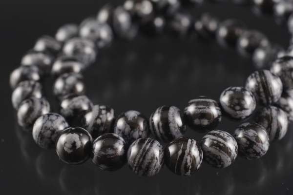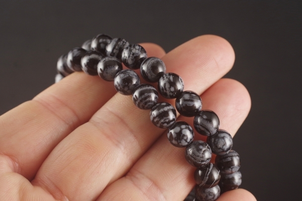 こちらは和田峠産の特徴でもある白い縞入りの黒曜石ビーズ!