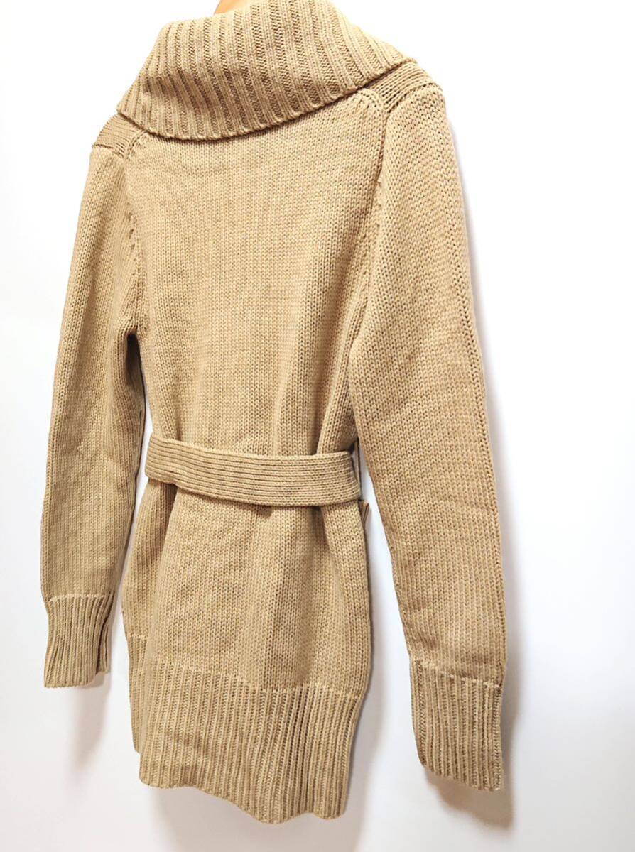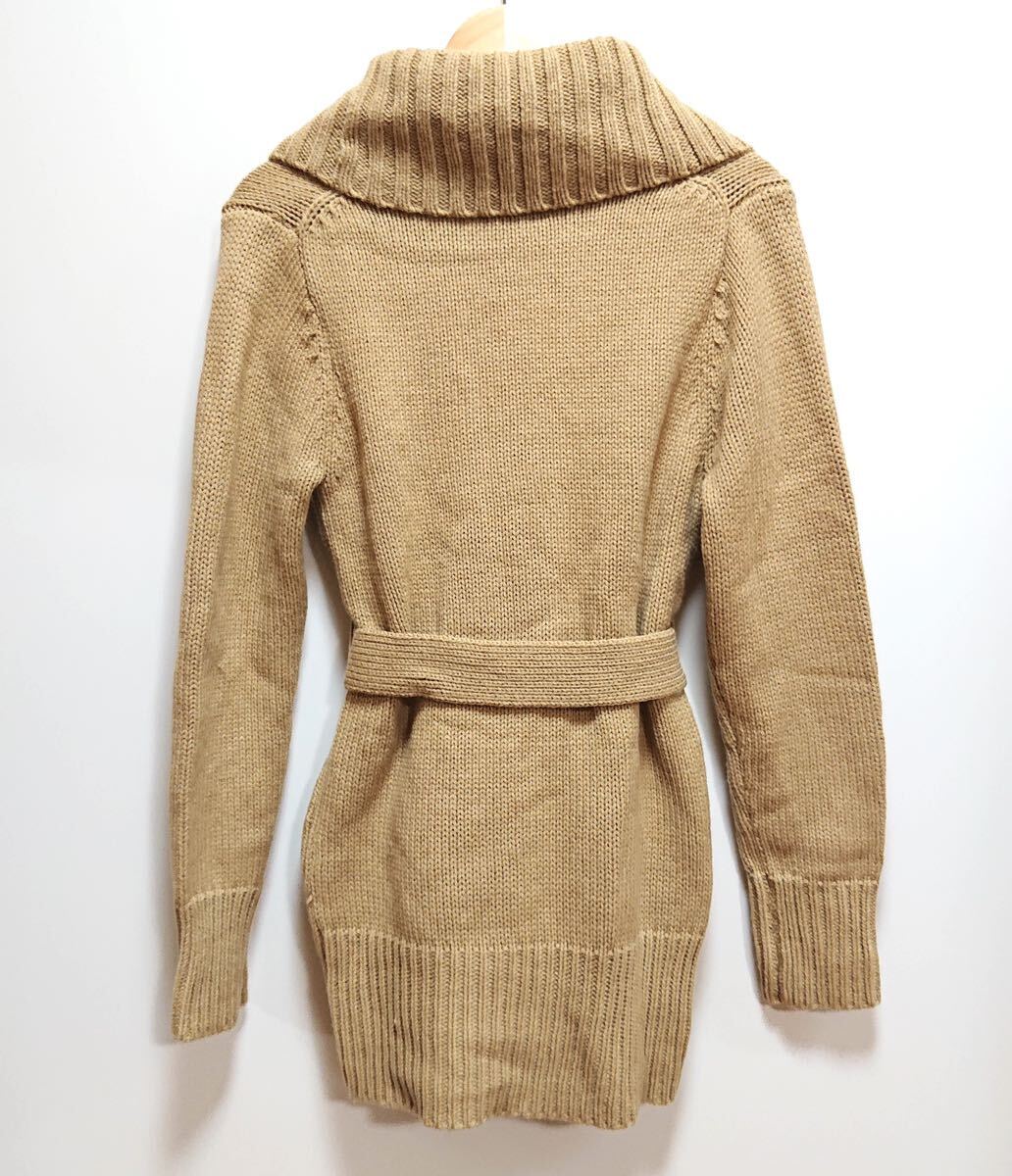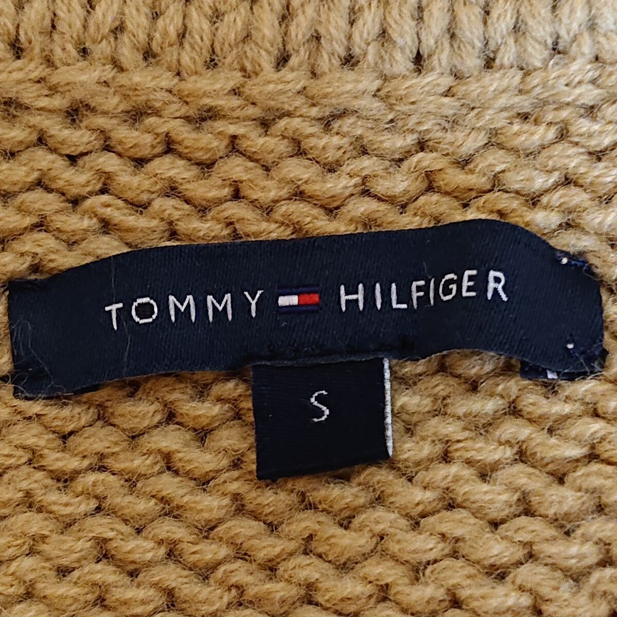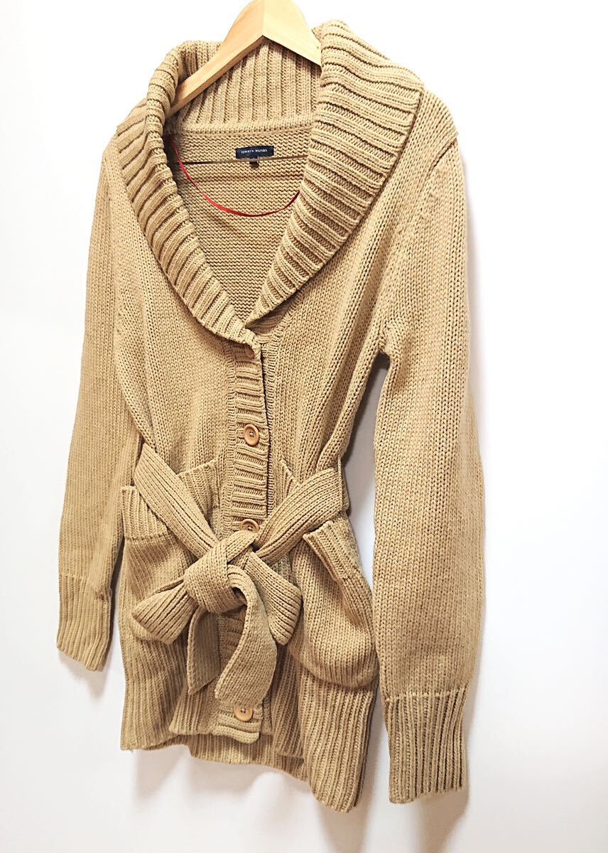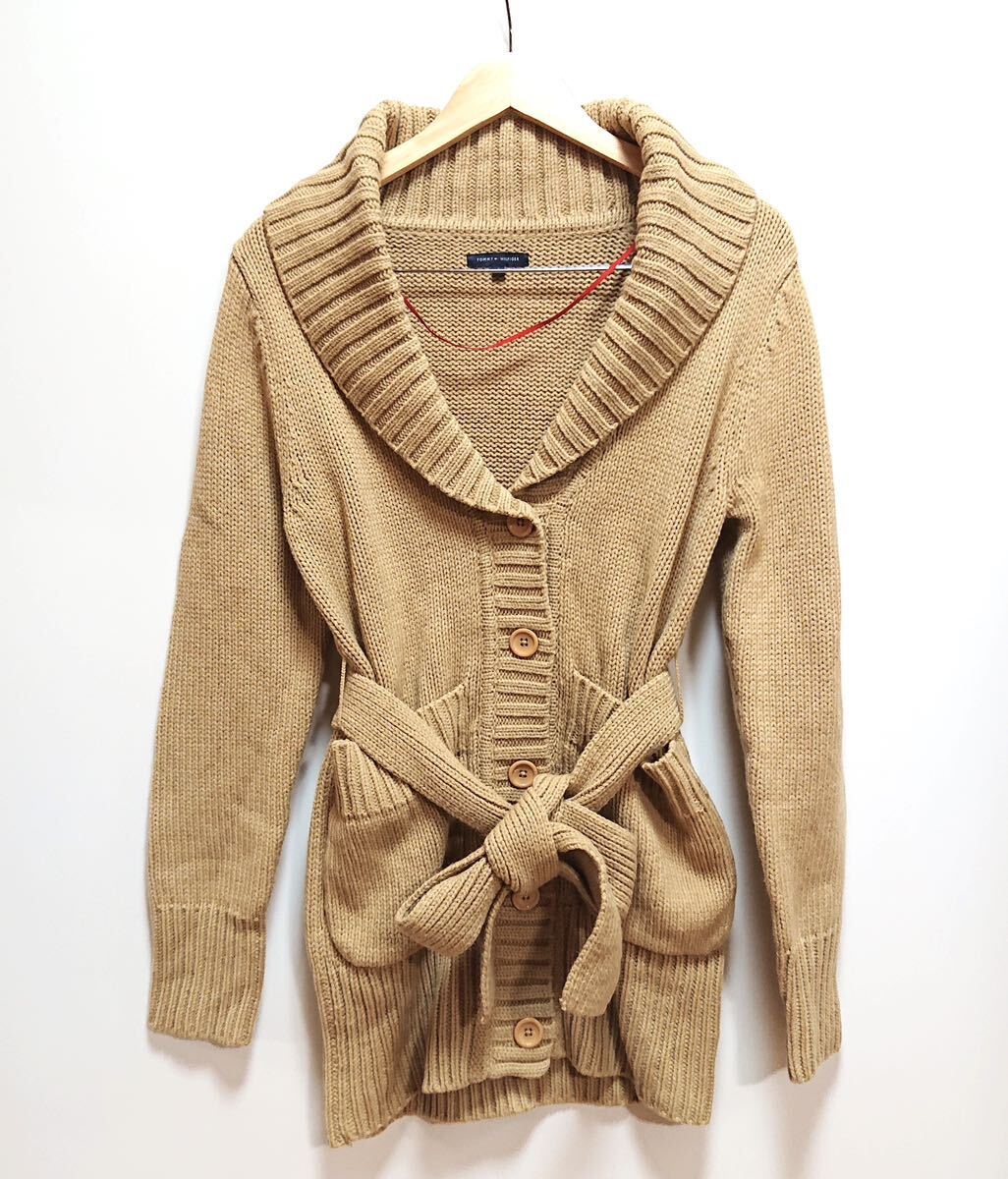 H9868gg 【Tommy Hilfiger】トミー ヒルフィガー サイズS ニットカーディガン ベージュ系 レディース ウール混 秋冬 ウェストリボン付