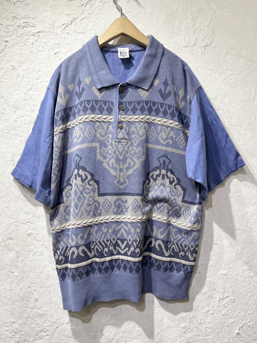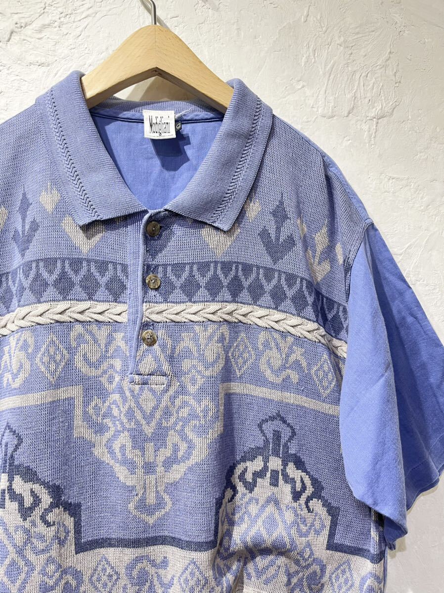 送料¥185 ビンテージModiglianiリネン系ニット切り替えポロシャツL