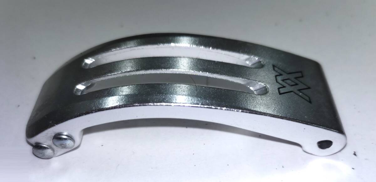 倉庫から発掘品 REXXAM バックル・フック 3本フォーク先繋がり・BKプリント・シルバー 左 長さ:約73ミリ-フック部の幅約17ミリ
