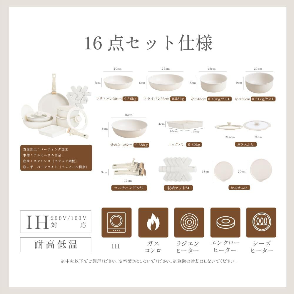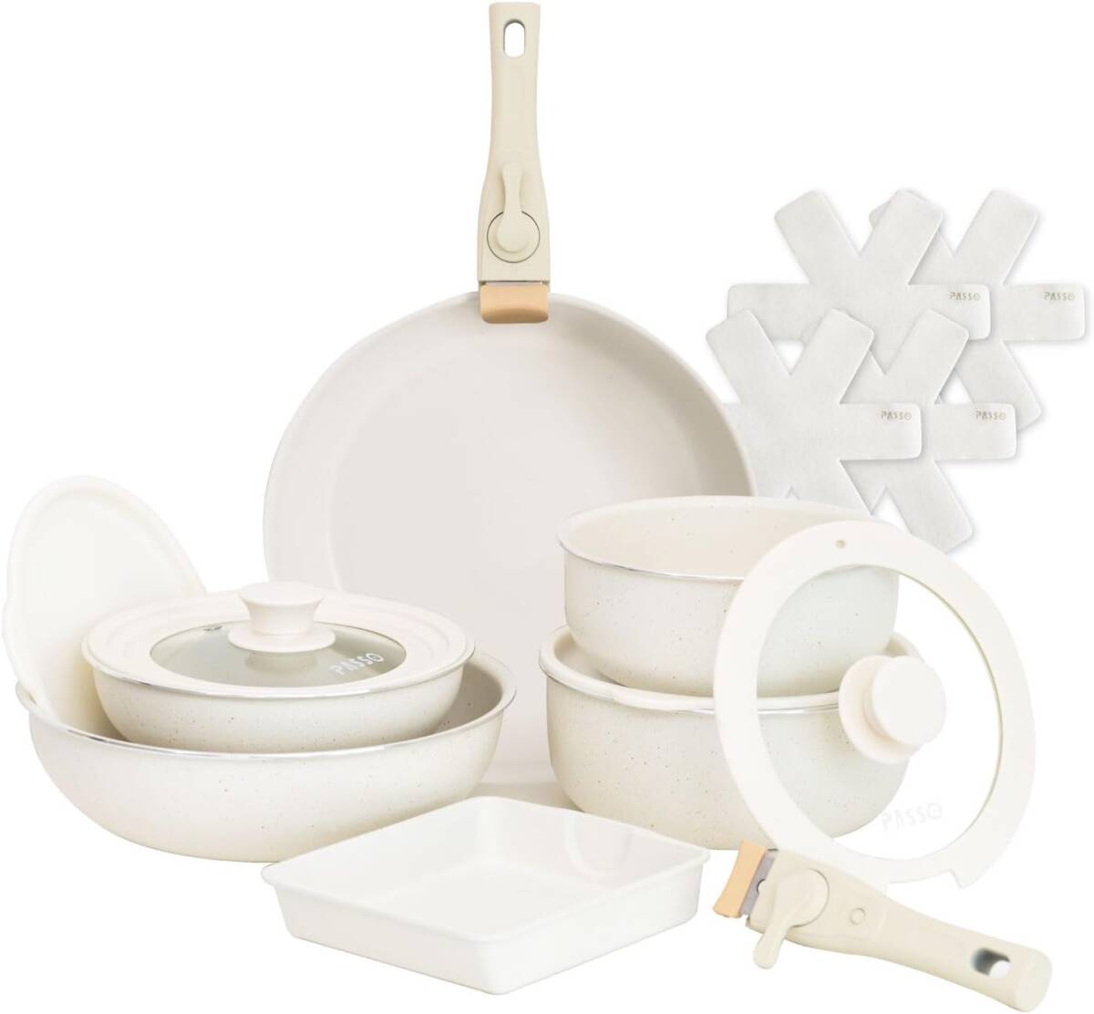 フライパン セット 16点 ih ガス火対応 取っ手が取れる 鍋セット 蓋付き 軽い キッチン用品 食器 調理器具 passo-nset16