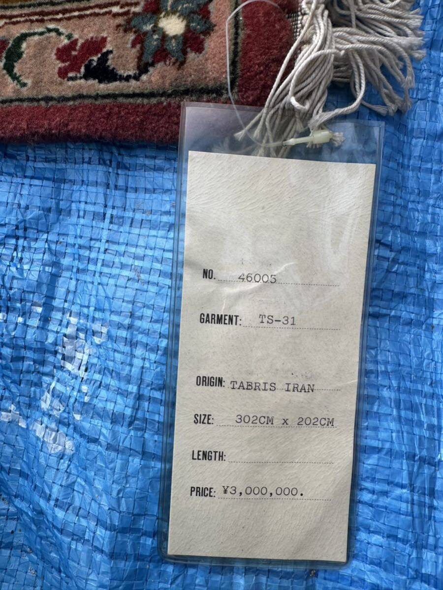 展示品 未使用タグ付き イラン タブリーズ 高級ペルシャ絨毯 カーペット 302×202cm 厚み約8mm(管理No.長倉1)