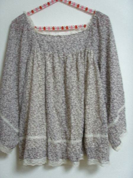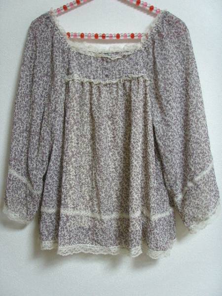 【ブランド・形態】 d・factory Dファクトリーです。 【カラー】 アイボリーにindigo花柄です。 色見本⇒ttp://www.colordic.org/colorsample/1134.html 掲載の実物写真はPC環境や光の加減により実物と色合いが若干異なる場合があります。 【特徴】 ネックにはゴム入りで、ナチュラルな花柄模様と、レースが女性らしくて可愛い七分袖シフォンチュニックです。 身頃の前後に裏地付きで、お袖だけには透け感あります。 ガウチョパンツや、ナチュラルなスカートと合わせて着たらガーリーに。(写真参照) 【状態】 あまり使用感が無く目立つようなシミ・ヨゴレなどはないです。 問題なくご愛用いただける状態かと思います。 【素材】 ポリエステル100%、レース部分ナイロン100%です。 【記載サイズ】 サイズはMとなっておりますが実寸も参考にして下さい。 【実寸サイズ】{平置き採寸} 縮みや伸びが生じている場合がありますので実寸サイズをご参照ください。 着丈 : 約52cm (背面襟下から裾まで) 肩幅 : 約---cm (両肩を直線で結んだ線) 身幅 : 約46cm (両脇を直線で結んだ線) 袖丈 : 約32cm (肩縫い目から袖先まで ) わきの下から計測しました。 尚、素人採寸です多少の誤差はご了承下さい。 裄丈 : 約62cm (後衿ぐり中央から肩先までを水平に計った長さと、 肩先から袖口までを足した値 ) | |||