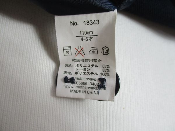 | BF868【V・S・F】裏地付き フォーマル ジャケット 男児 濃青 110 | ||