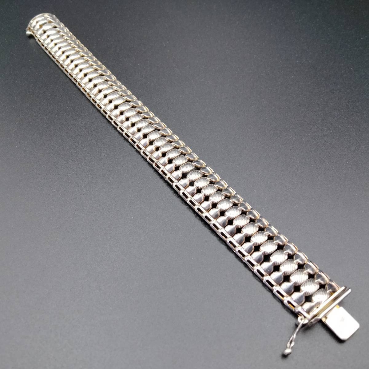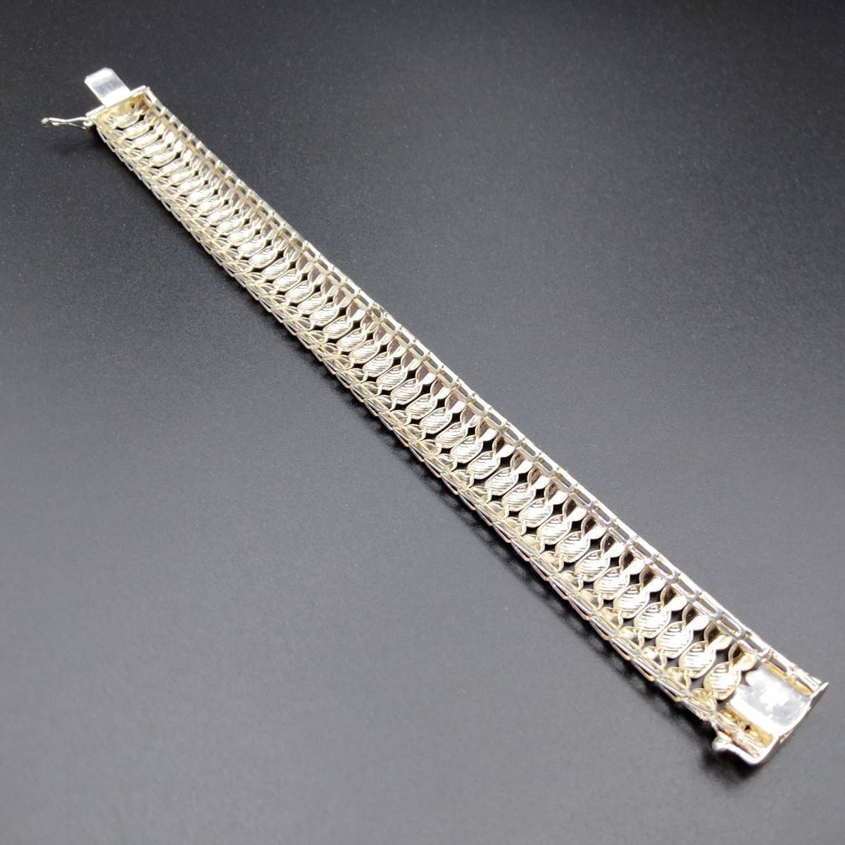 MILOR イタリア ヴィンテージ キャンディ モチーフ チェーン 925 シルバー ブレスレット 17g 銀細工 ミロル 幅広 オープンワーク R8-N