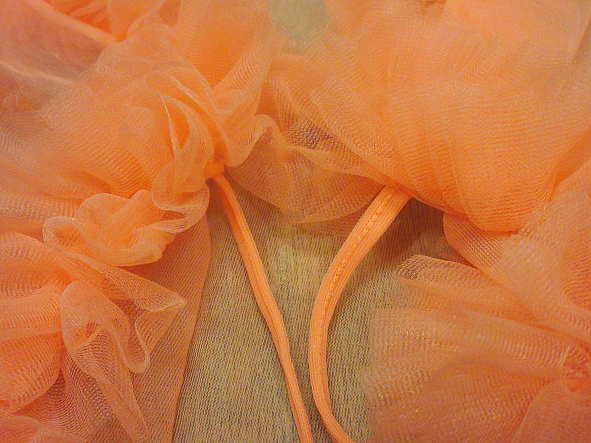 点々と傷あり、写真と色味が若干異なります、右側のフリルに欠損している箇所あり