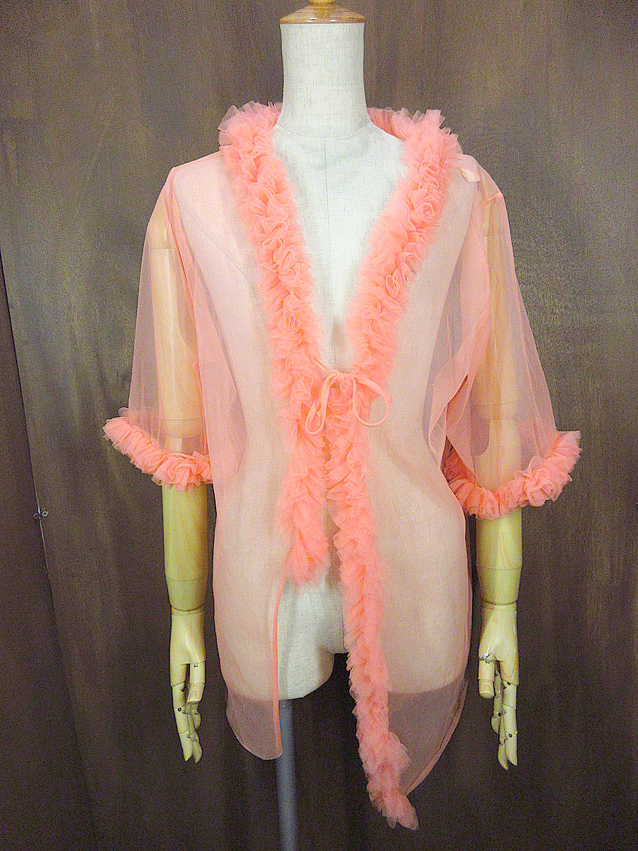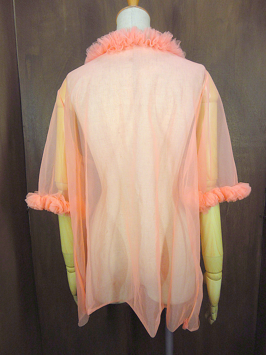 ビンテージ60’s70’s●Carol Brentフリルチュール半袖カーディガン ピンクsize LG●240903j8-w-cdgレディース古着1960s1970sボレロ