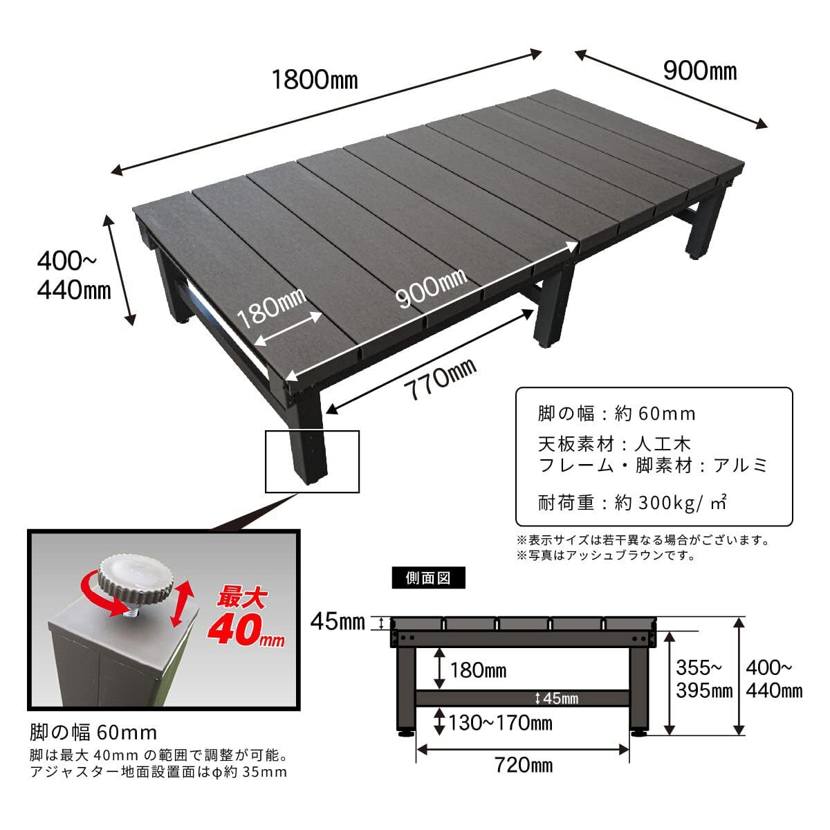 【色褪せしにくい人工木アルミDX】 ウッドデッキ 人工木 アルミ DXデッキT5型 1800×900×400~440mm ブラウン/アッシュブラウン)