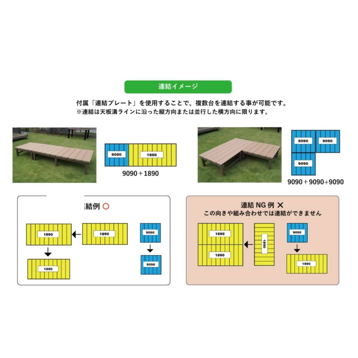 連結可能:1800サイズ同士や900サイズとの連結ができ、柔軟にレイアウト可能。