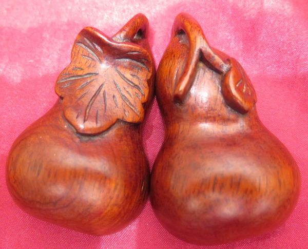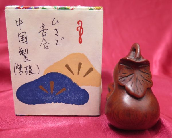 ◆茶道具◆香合 ひさご 瓢箪型 紫檀 中国製 箱付 詳細不明 長期保管品