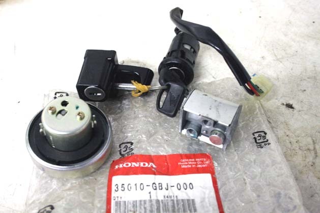 ホンダ純正、デット未使用、新品未開封の新品未使用のままの、ゴリラ、DAX、エイプ 等のIGN、ハンドルロック、タンクキャップ、ヘルメットフックロック等共通キー用1式 4式1セットです。