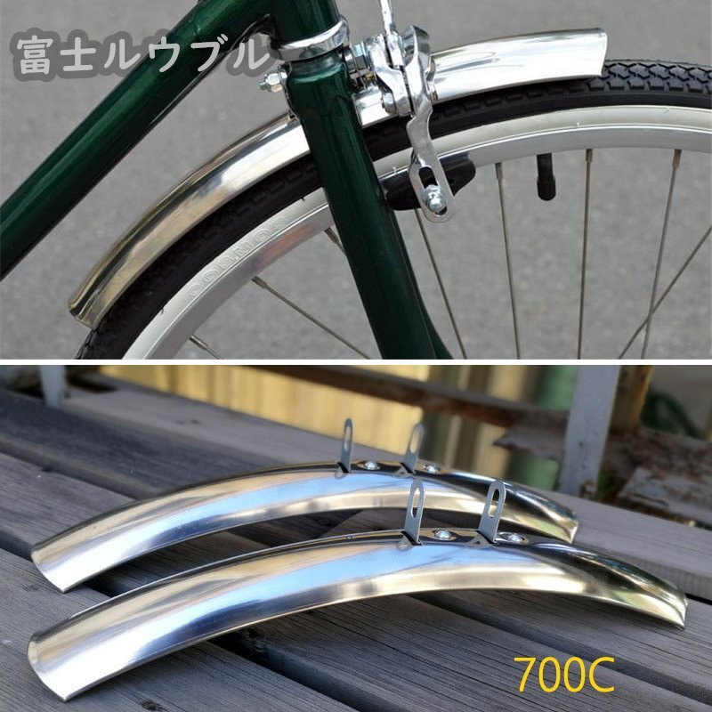 お得 1セット レトロ バイク フロント リア フェンダー 700C ステンレス スチール マッドガード ウィング ロード 自転車 パーツ