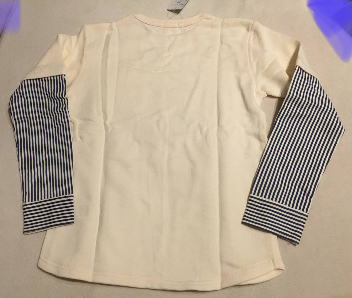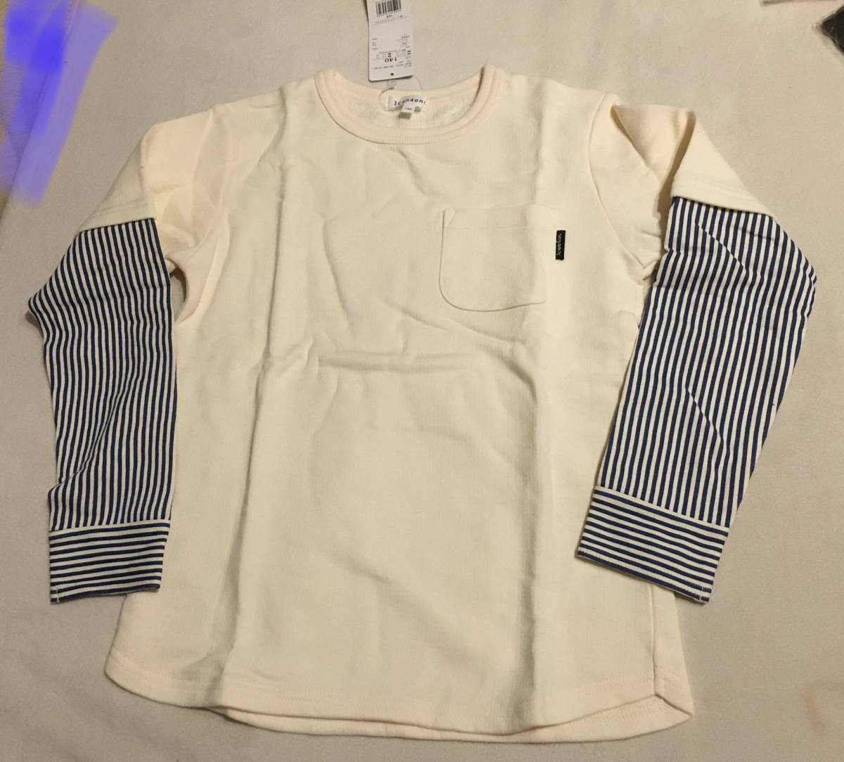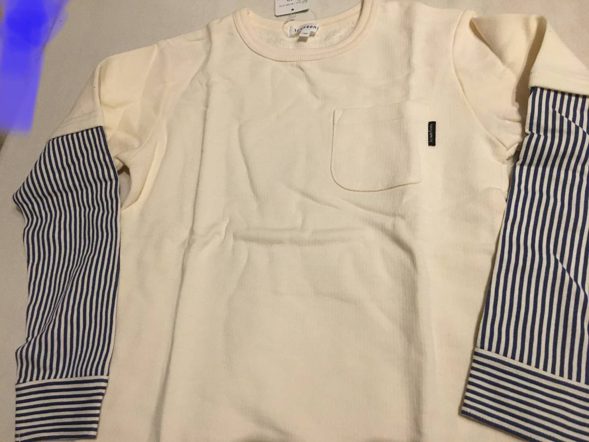 ラスト 新品 3can4on 袖ストライプ裏毛プルオーバー ホワイト系(002) 14(140cm) 定価2189円円