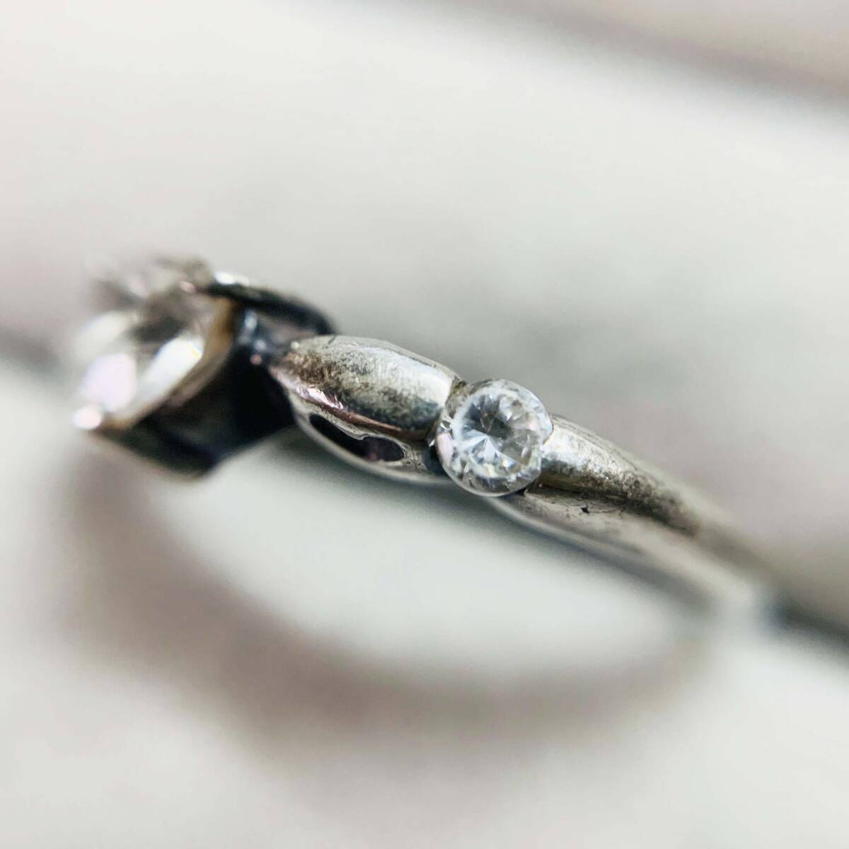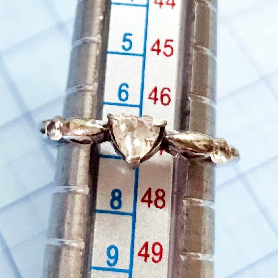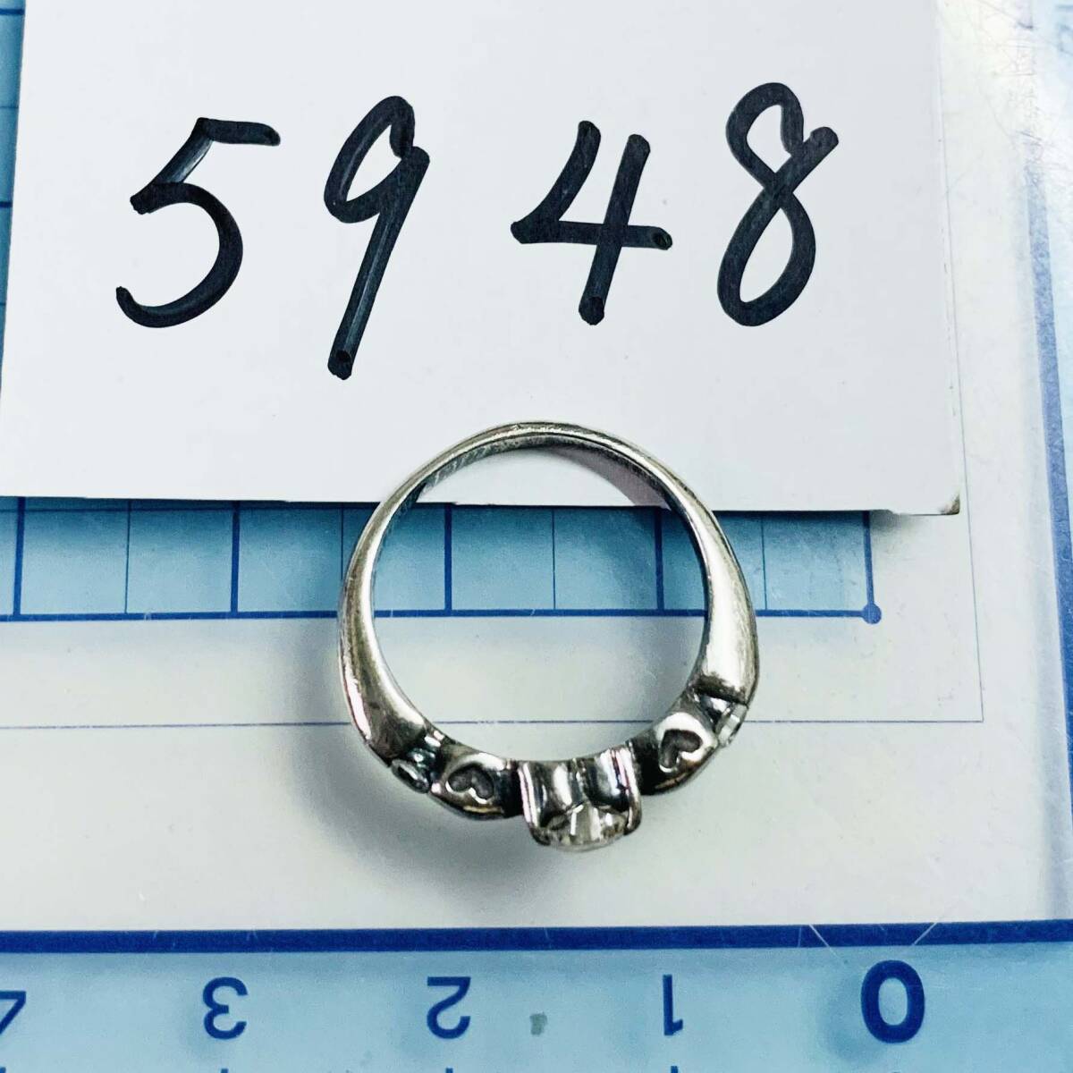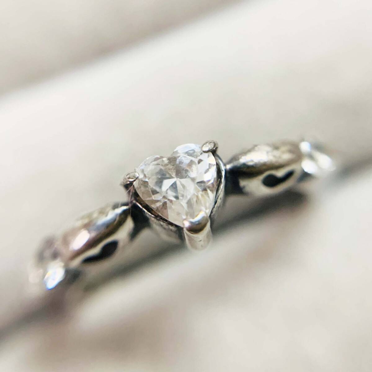 美品 ダイヤ風CZ ハート 925シルバー銀製 指輪リング サイズ約#7 No.5948