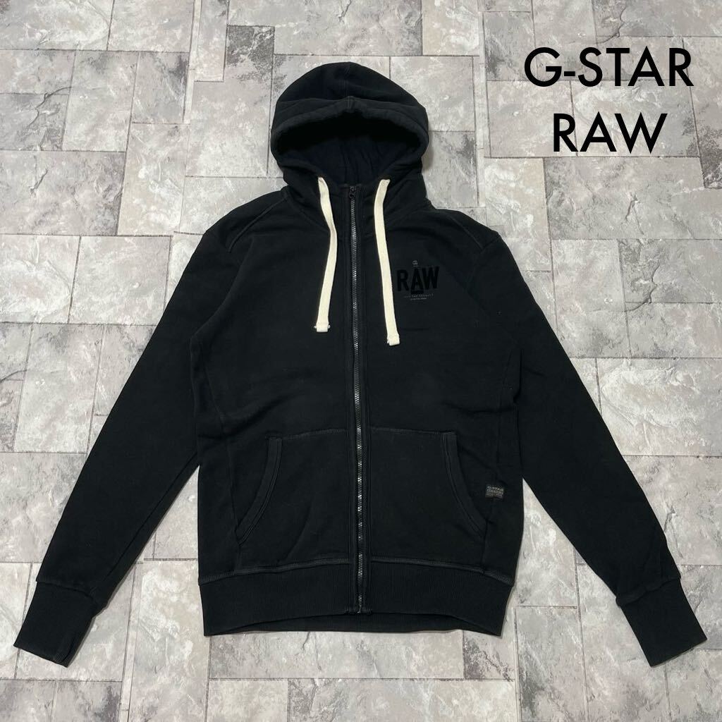 G-STAR RAW ジースターロウ sweat hoodie ジップアップパーカー スウェット プリントロゴ フェルト ブラック サイズM 玉FL3683