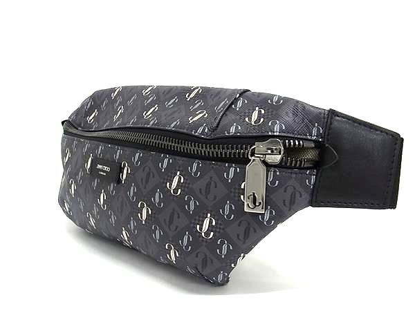 ■新品同様■ JIMMY CHOO ジミーチュウ JCロゴ PVC 総柄 ウェストバッグ クロスボディ 斜め掛け ダークグレー系 AZ7928