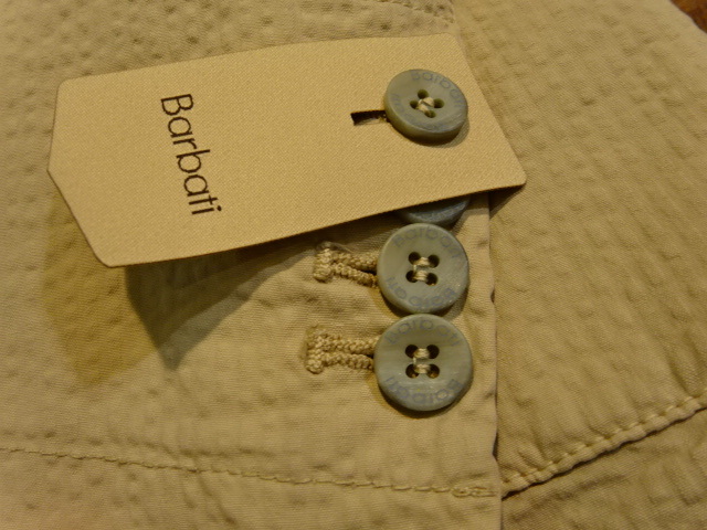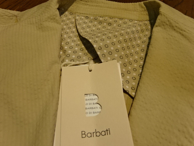 | ☆ | 新品未使用です。イタリアの人気ブランド、バルバッティーのコットンジャケットです。国内正規品、イタリア製になります。素材はコットン98%、エラスタン2%、ストレッチが効くサッカー素材です。冬以外はは着ていただけますよ。2ボタン、サイドベンツ、2パッチ、アンコン仕立てのスタイルす。袖は本切羽になっています。サイズは50、おおよそですが着丈72、肩幅45、胸囲106、裄丈86センチ程になります。定価は63800円になります。カラーはベージュ系になります。 | ★ | |||||||