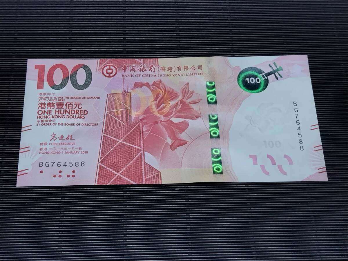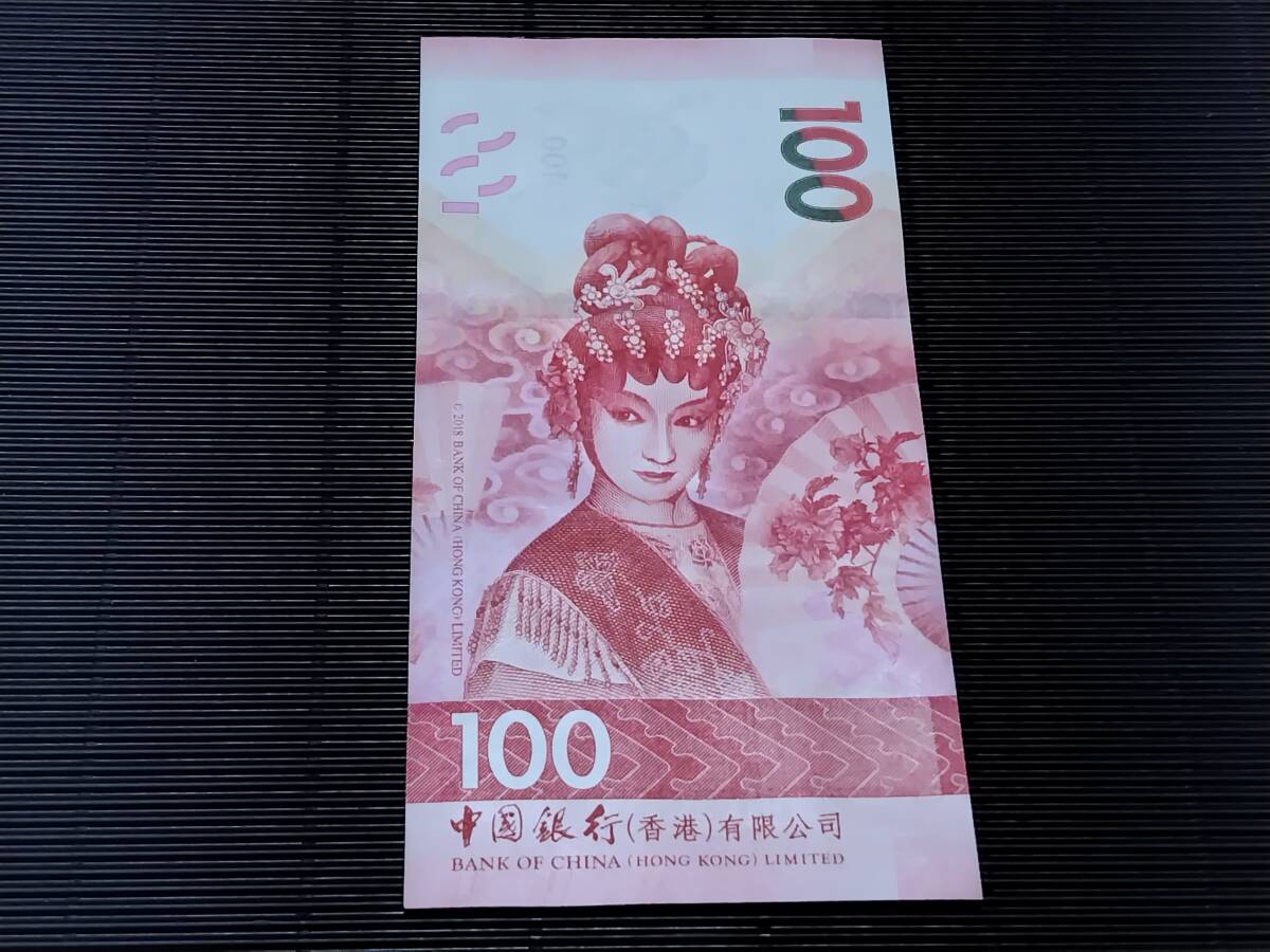 香港 BOC銀行 100 Dollars札   コレクション向きのピン札  甘い未使用~未使用  2018年1月1日    p-W350 #BG764588