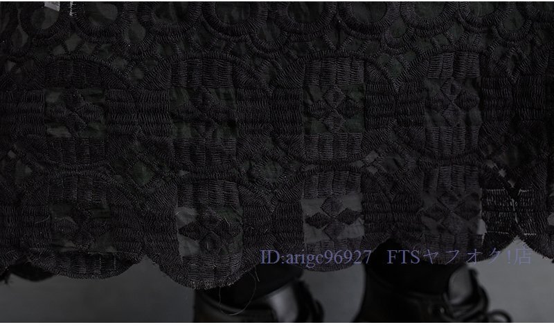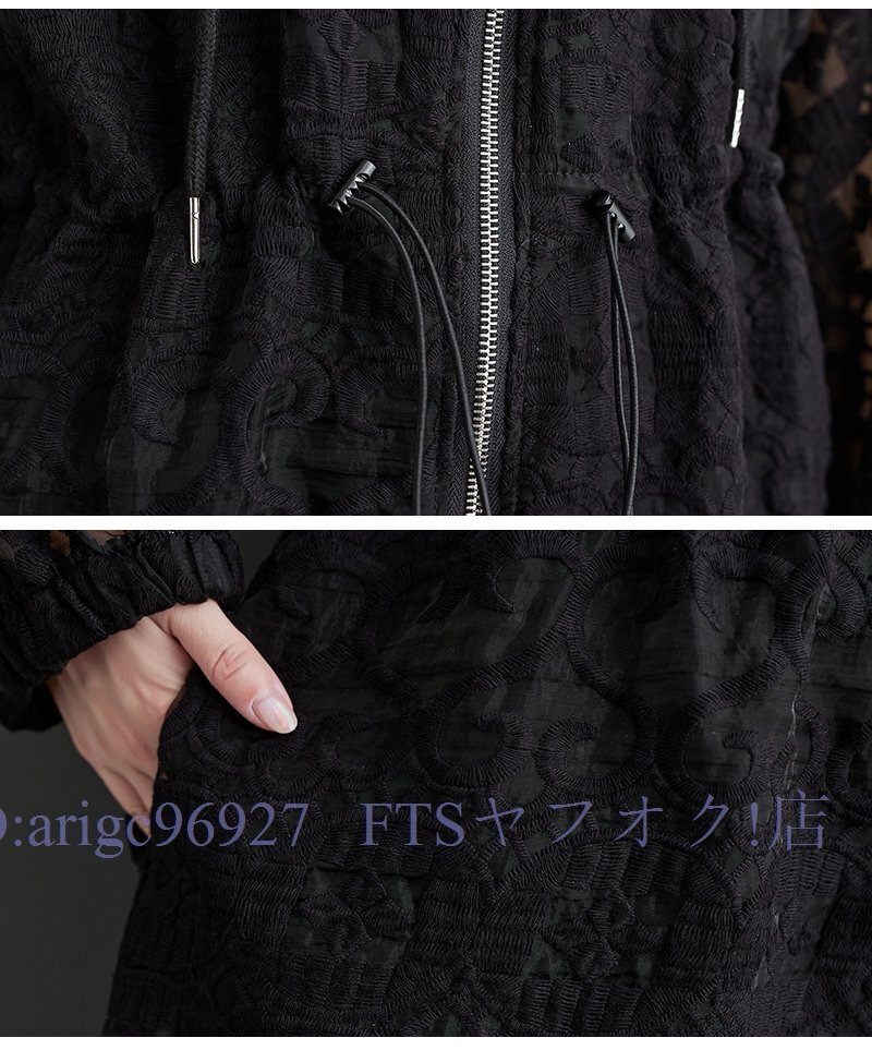 A6291☆新品秋 レディース カジュアル ゆったり大きいサイズ 体型カバー 切り替 レース フードつき コート F 黒