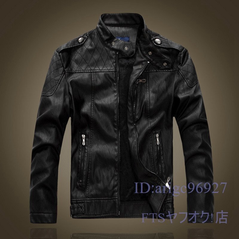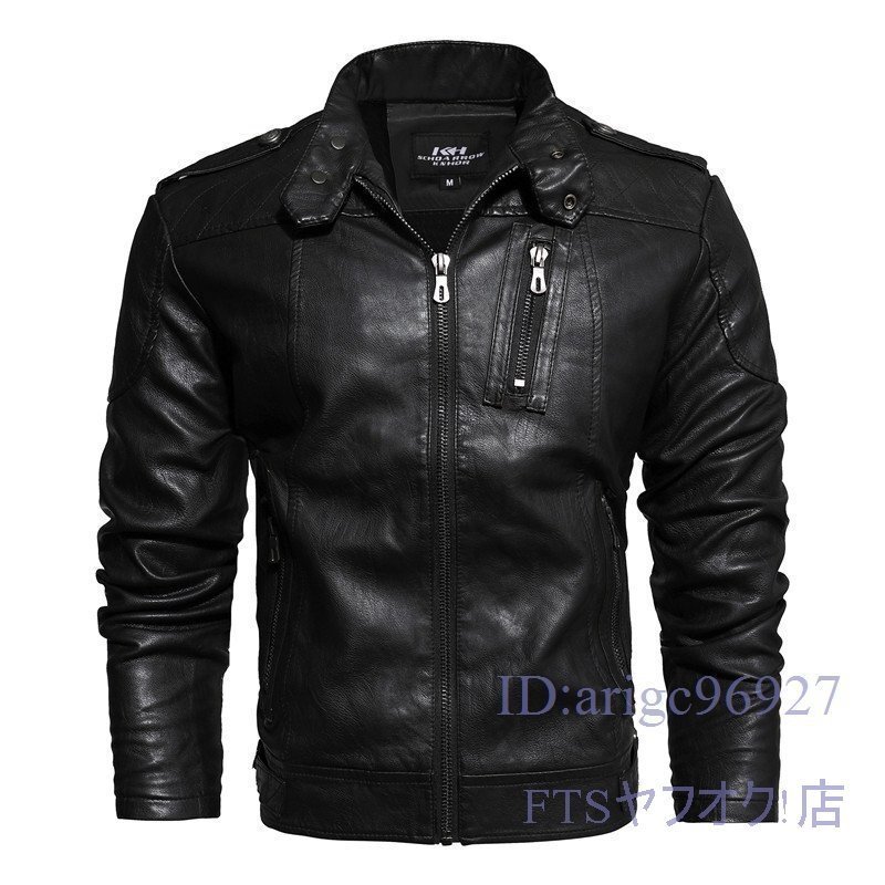 T817☆新品ライダースジャケット メンズ 裏薄めボア トレンド コーチ ブルゾン コート カジュアル バイクウエア 黒 4XL