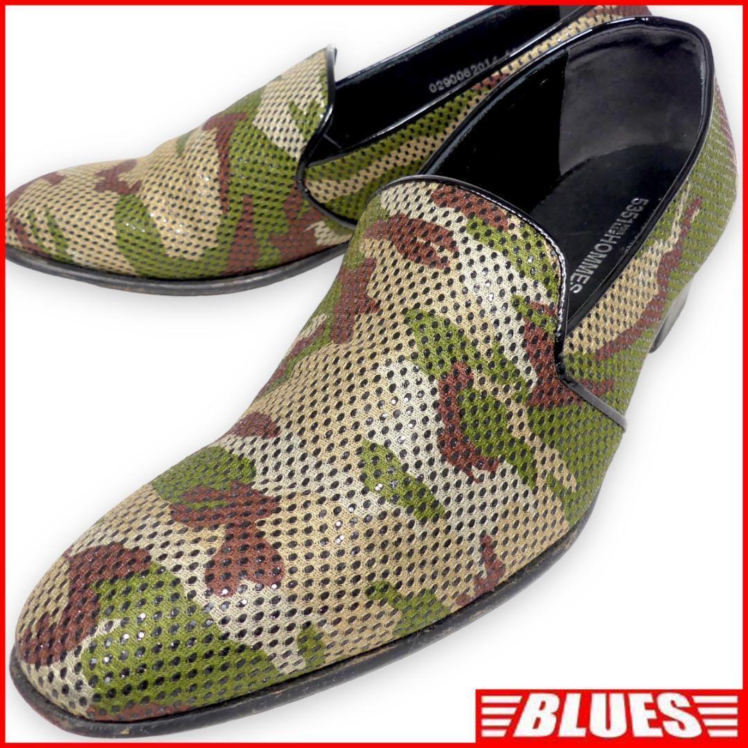 即決★日本製 5351 POUR LES HOMMES★27cm レザースリッポン 5351プールオム メンズ 44 迷彩 カモフラ 本革 皮 ローファー 革靴 モカシン