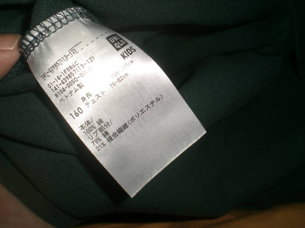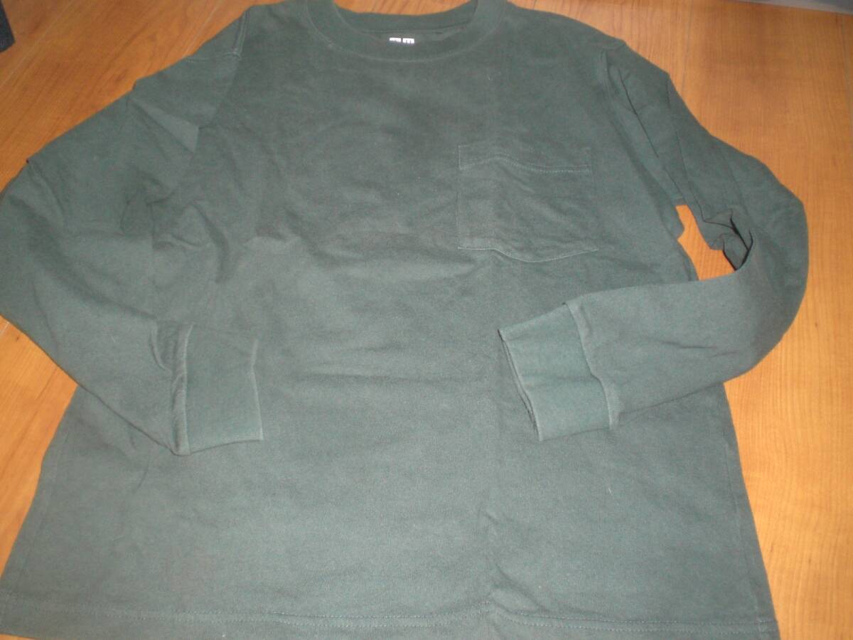 ユニクロU 160 モスグリーン長袖Tシャツ