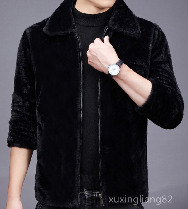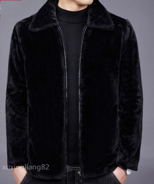 新作 ファーコート メンズ フェイクファー 厚手 ブルゾン ビジネス 紳士 アウター カジュアル 防寒 暖か 冬用 黒/2XL