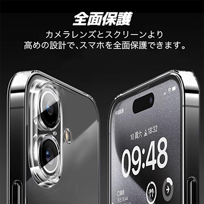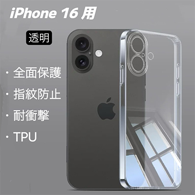 iPhone 16 用 スマホケース ケース 透明 クリア 一体型カメラレンズ部分保護 保護カバー 指紋防止 耐衝撃 ワイヤレス充電