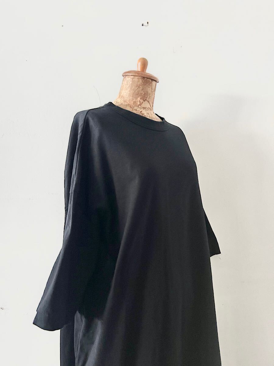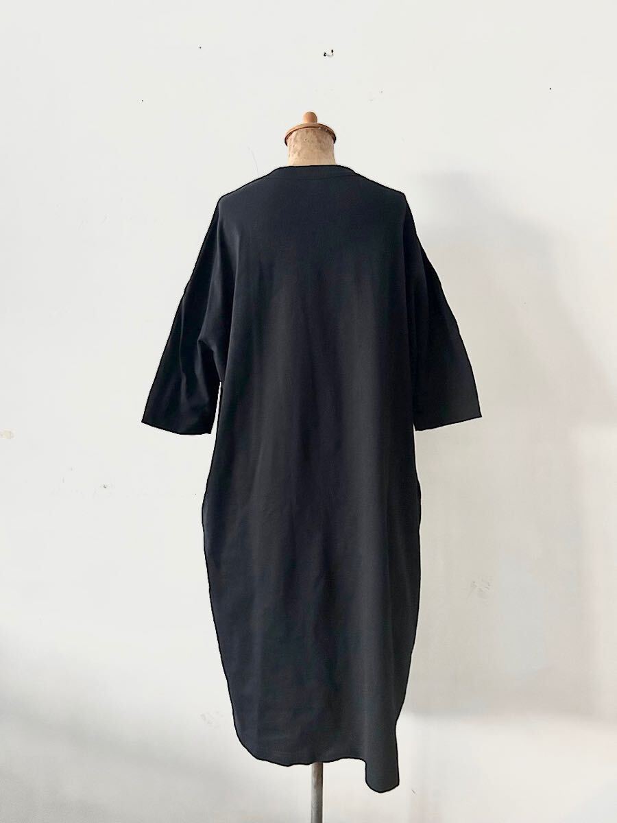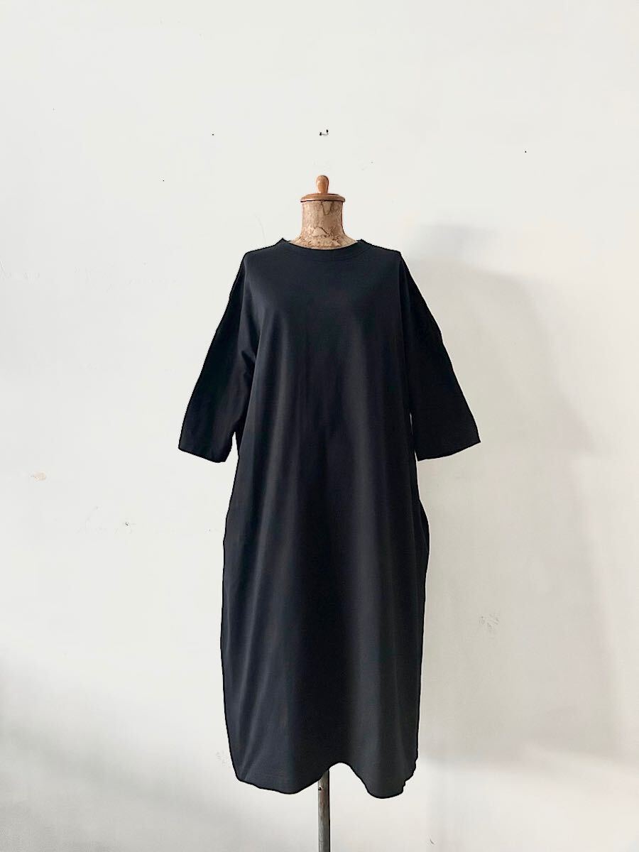 シーズン問わずに着られるTシャツを伸ばしたようなクルーネックのワンピースで、