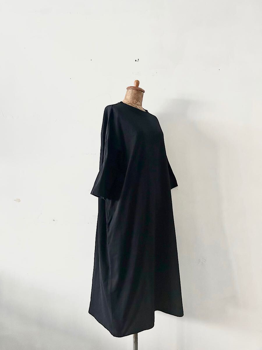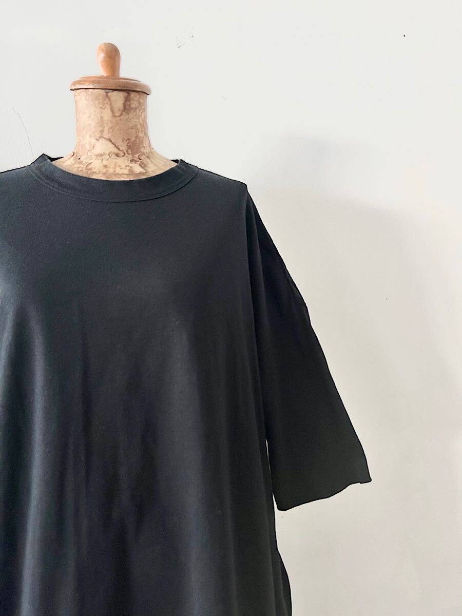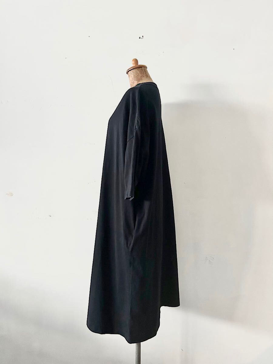 シーズン問わずに着られるTシャツを伸ばしたようなクルーネックのワンピースで、