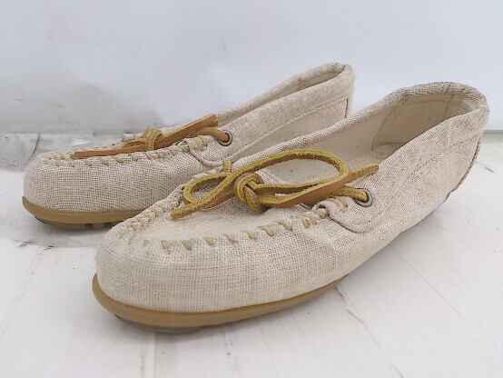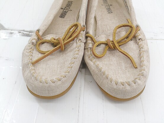 ◇ Minnetonka ミネトンカ 定番 シンプル モカシンローファーシューズ サイズ5 ライトベージュ レディース E