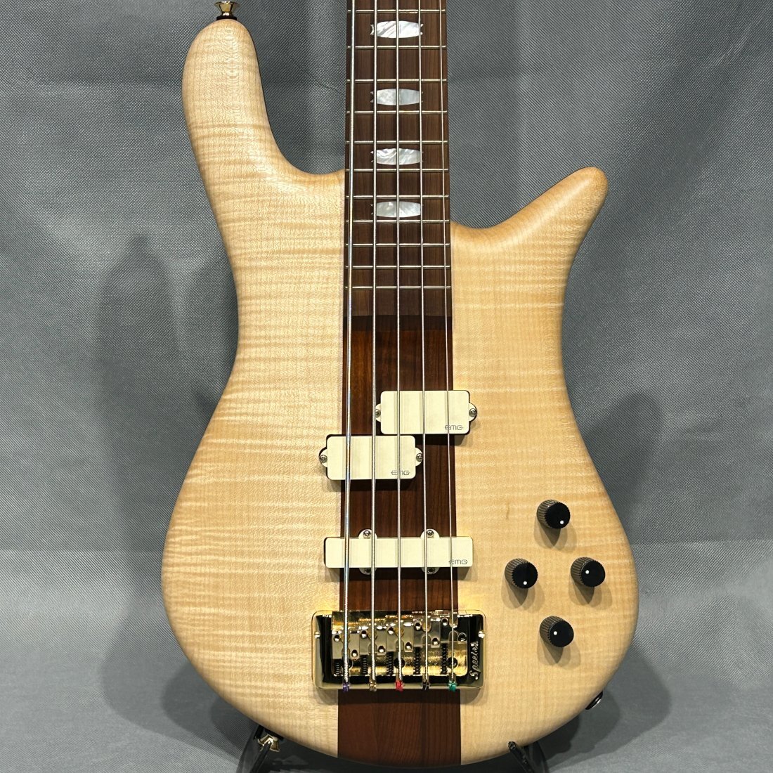 こちらの商品は一部の地域*を除き送料無料(送料込)です。 *北海道・沖縄・離島へのお届けは別途、送料が必要になります。 定価¥578,000(税込¥635,800) Euro RSTシリーズは、 Spectorのクラシックなデザインを、 最新のトーンウッド、強化されたエレクトロニクス、 新鮮なステイン・オプションで新しい時代へと導きます。 ネック・スルー構造は、 長年にわたりSpectorのデザインの中心をなしてきました。 Euro RSTは、このコンセプトをさらに進化させ、 3ピースのローステッド・メイプル・ネックと指板を採用。 この完璧なトーンウッドは、 ユニークなフィギュアドのフレイム・メイプル・トップと エンプレスウッド・バックと組み合わされ、 印象的な外観とレゾナンス、そして軽さを実現しています。 エレクトロニクスには、 EMG PJセットピックアップと Darkglass Tone Capsuleプリアンプを搭載。 このエキサイティングなベースは、 日本限定ナチュラル・カラーで展開され、 それにマッチしたヘッドストックと、初日から馴染む ソフトなマット・フィニッシュが施されています。 ■NECK Neck-Thru Body NECK CONSTRUCTION・・・3-piece Roasted Maple w/Graphite Rod Support FINGERBOARD・・・Roasted Maple NUMBER OF FRETS・・・24 INLAYS・・・Mother of Pearl Crown SCALE LENGTH・・・35″ NUT・・・Brass WIDTH AT NUT・・・1,81″ ■BODY Our original NS curved and carved body shape TOP WOOD・・・4A North American Figured Maple BODY WOOD・・・Paulownia/Empresswood FINISH・・・Matte ■HARDWARE COLOR・・・Gold Hardwear BRIDGE・・・Aluminum Locking TUNERS・・・Gotoh GB-350 ■PICKUPS AND ELECTRONICS TYPE・・・EMG P5J SET_Ivory Cap Cover NECK PICKUP・・・EMG P BRIDGE PICKUP・・・EMG J PREAMP SYSTEM・・・Darkglass Tone Capsule CONTROLS・・・Bridge Volume, Neck Volume, Bass Cut/Boost, Treble Cut/Boost ■OTHERS STRINGS・・・D’Addario XL-170 nickel 【付属品】 ギグバッグ、メーカー保証書 【商品の状態】 1本限りの展示特価品 新品、店頭展示品 *店頭展示品に関しましては、部分的に若干のキズ、試奏痕等が見られることがございます。 (商品の状態等気になる点がございましたら、お気軽にお問い合わせ下さい。) |