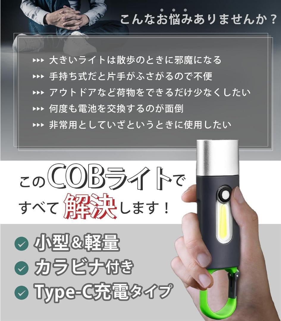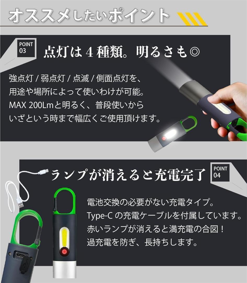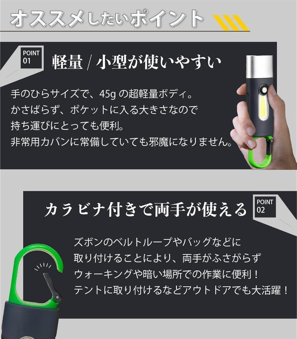 ワークライト 充電式ライト 小型軽量 カラビナ付き